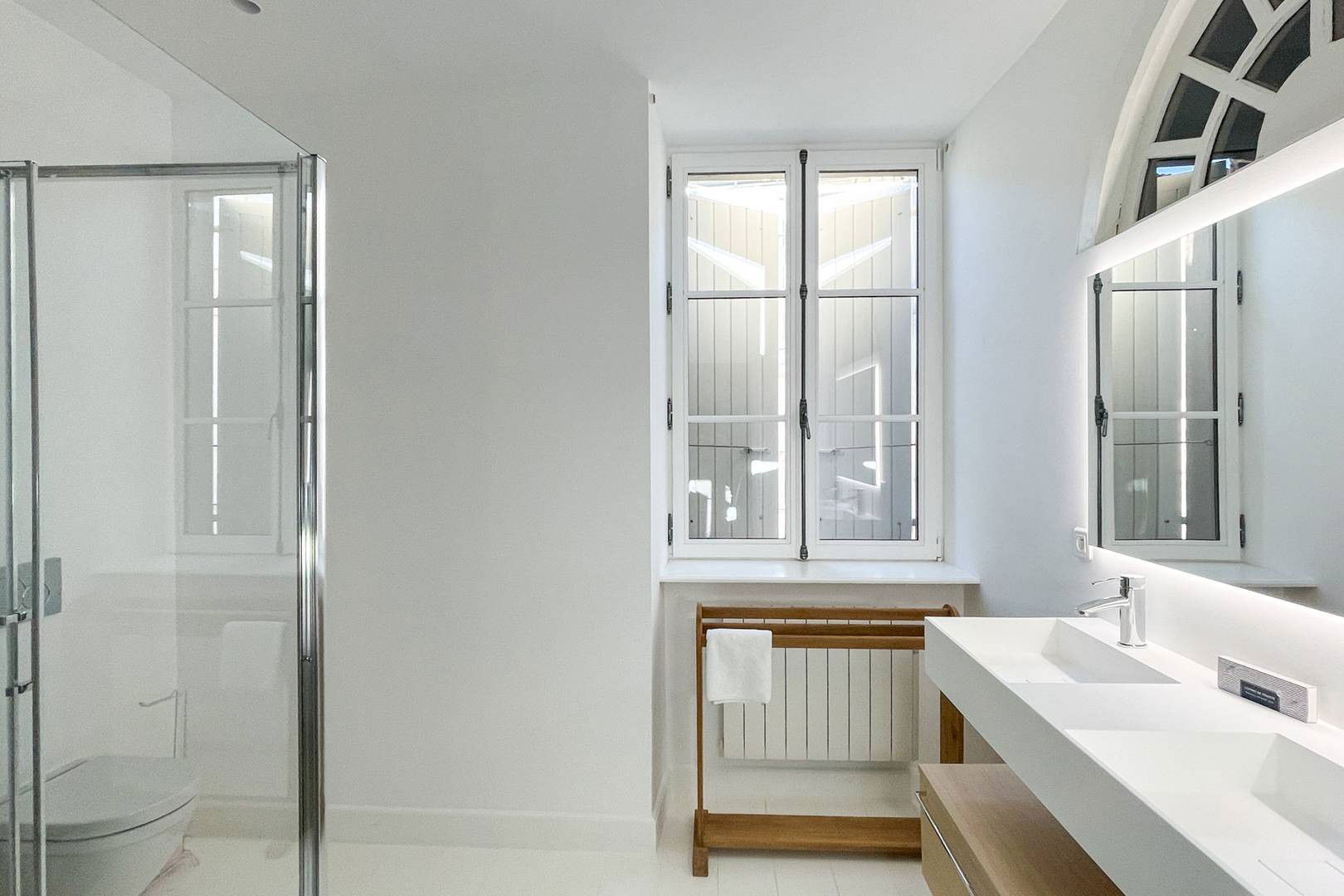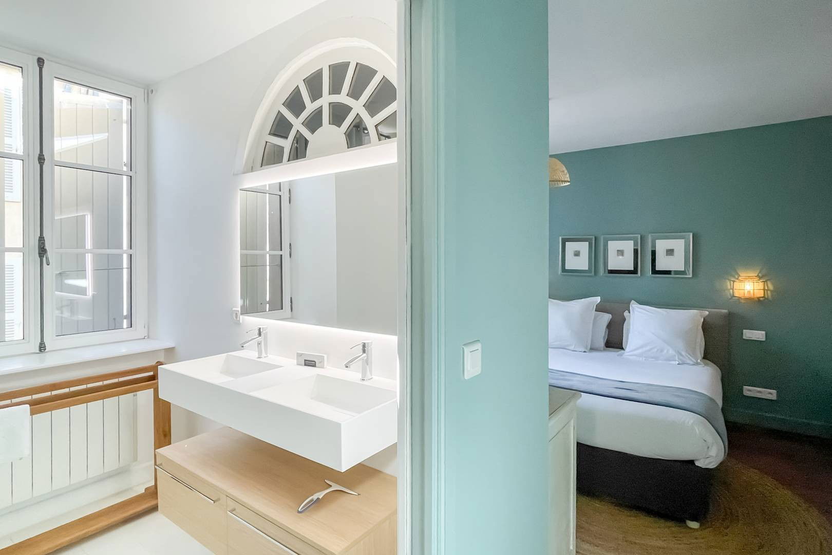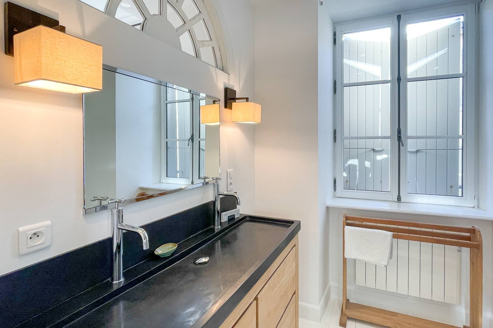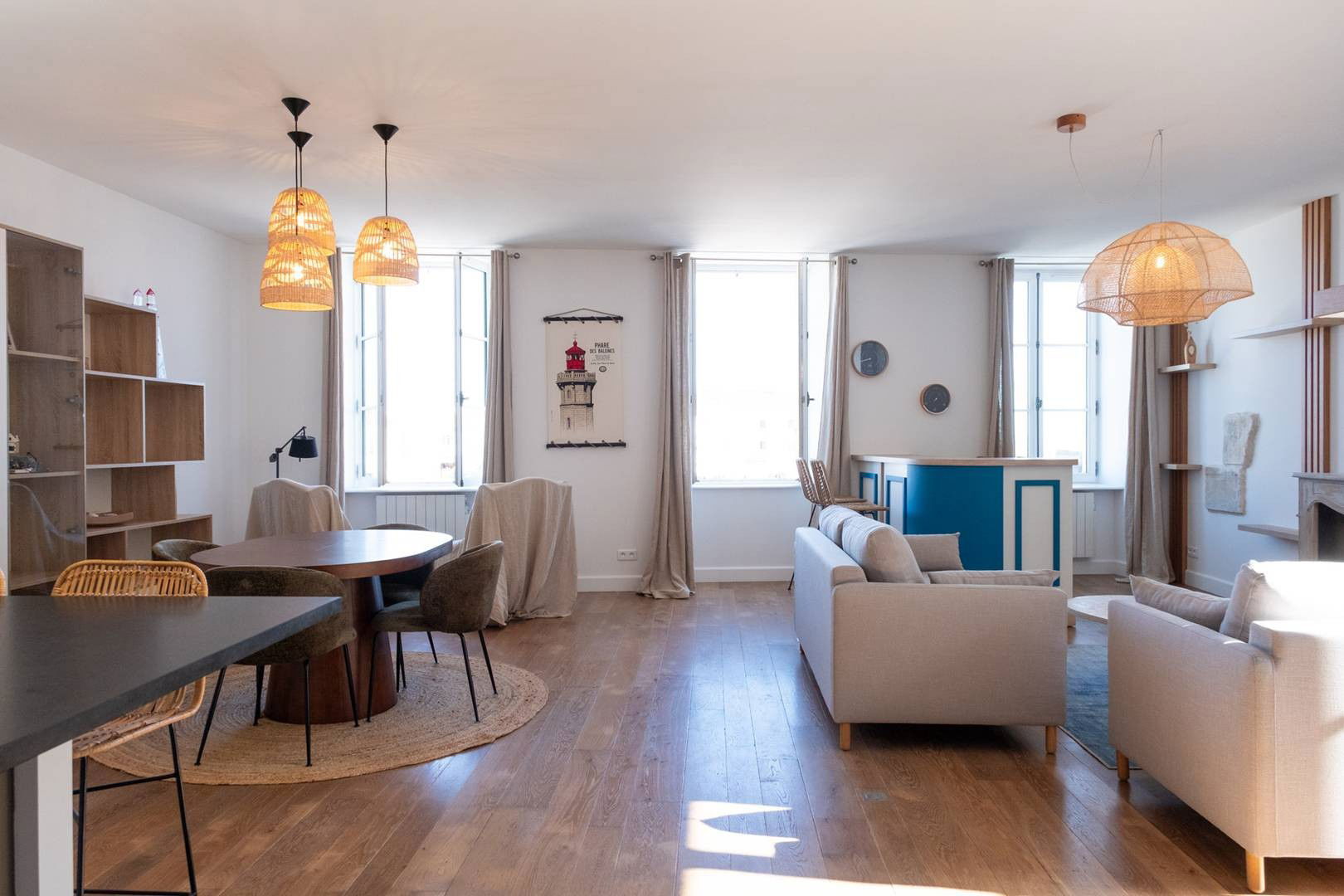 The Port apartment is a large 117m2 apartment renovated in 2024 by a decorator on the floor of a historic building. It has two double bedrooms with two bathrooms and 3 toilets. Overlooking the lively port of Saint Martin de Ré, the historic capital, you will have a front row seat to the activity of the Island while enjoying the beauty of the tides and sunsets over the Port. With its fully equipped American kitchen, you can create your own “home” during your "Retais" stay.