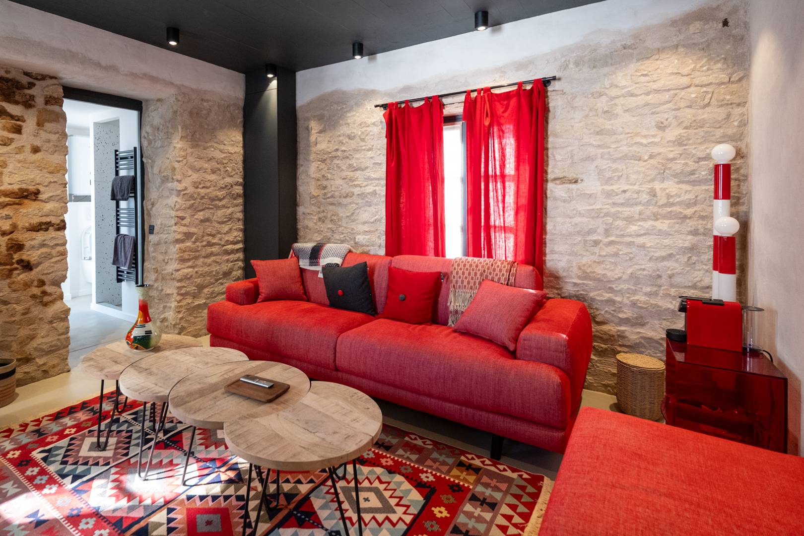 Underfloor heating in the concrete bathrooms (4 out of 6) and the TV living room