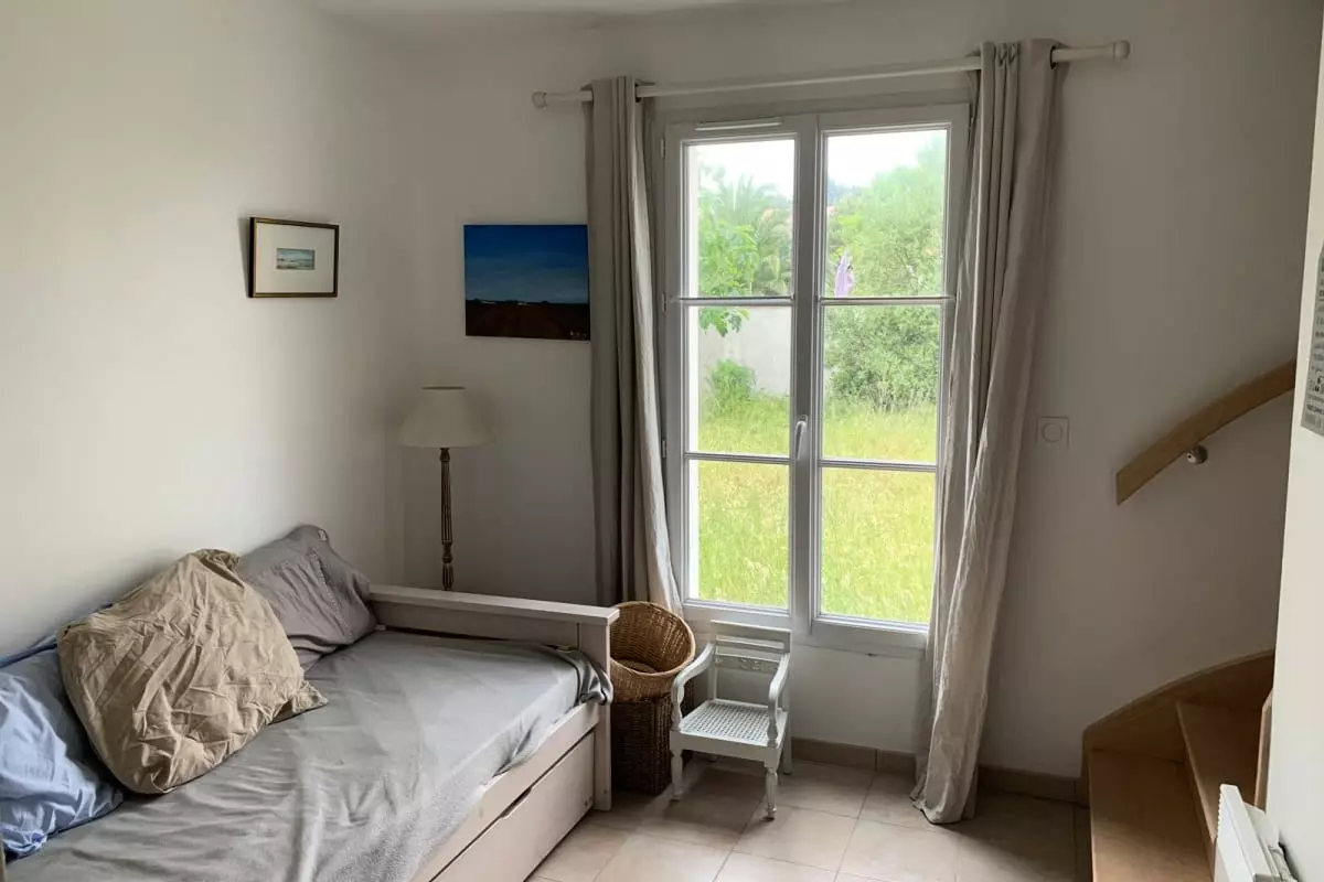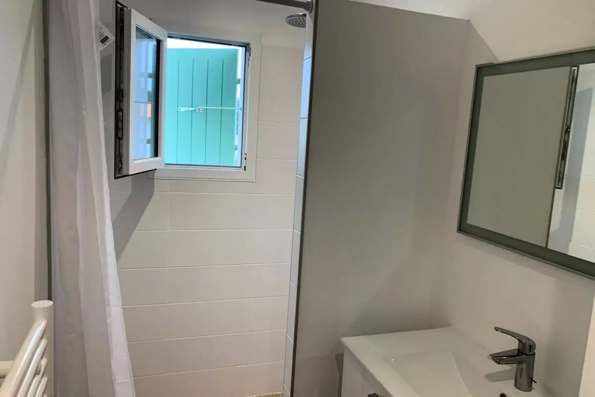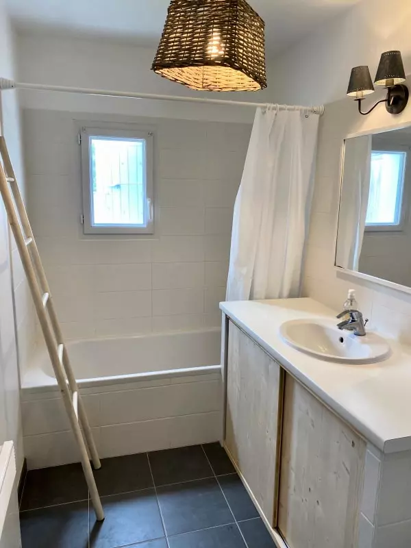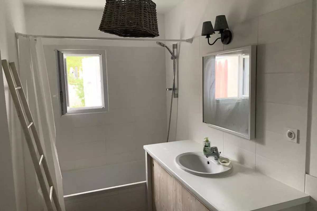 The house, spread over two floors, is ideal for two families: on the ground floor, 2 bedrooms and a bathroom; upstairs, 3 bedrooms and a shower room.