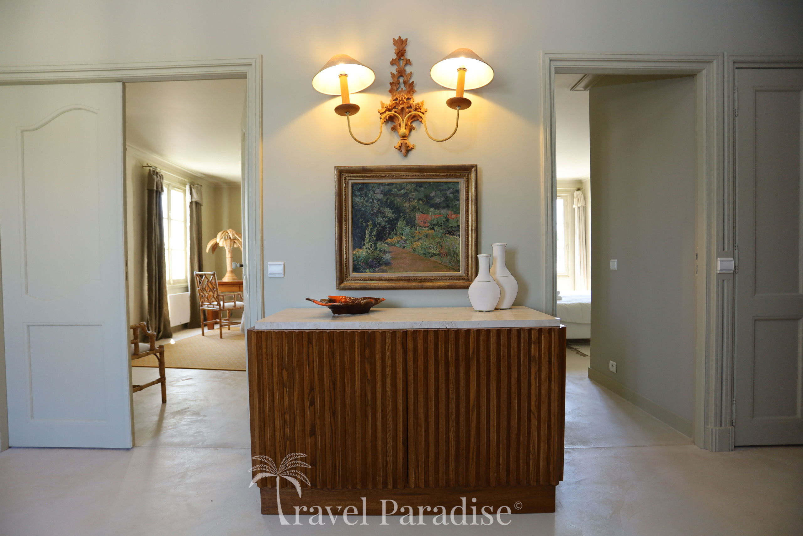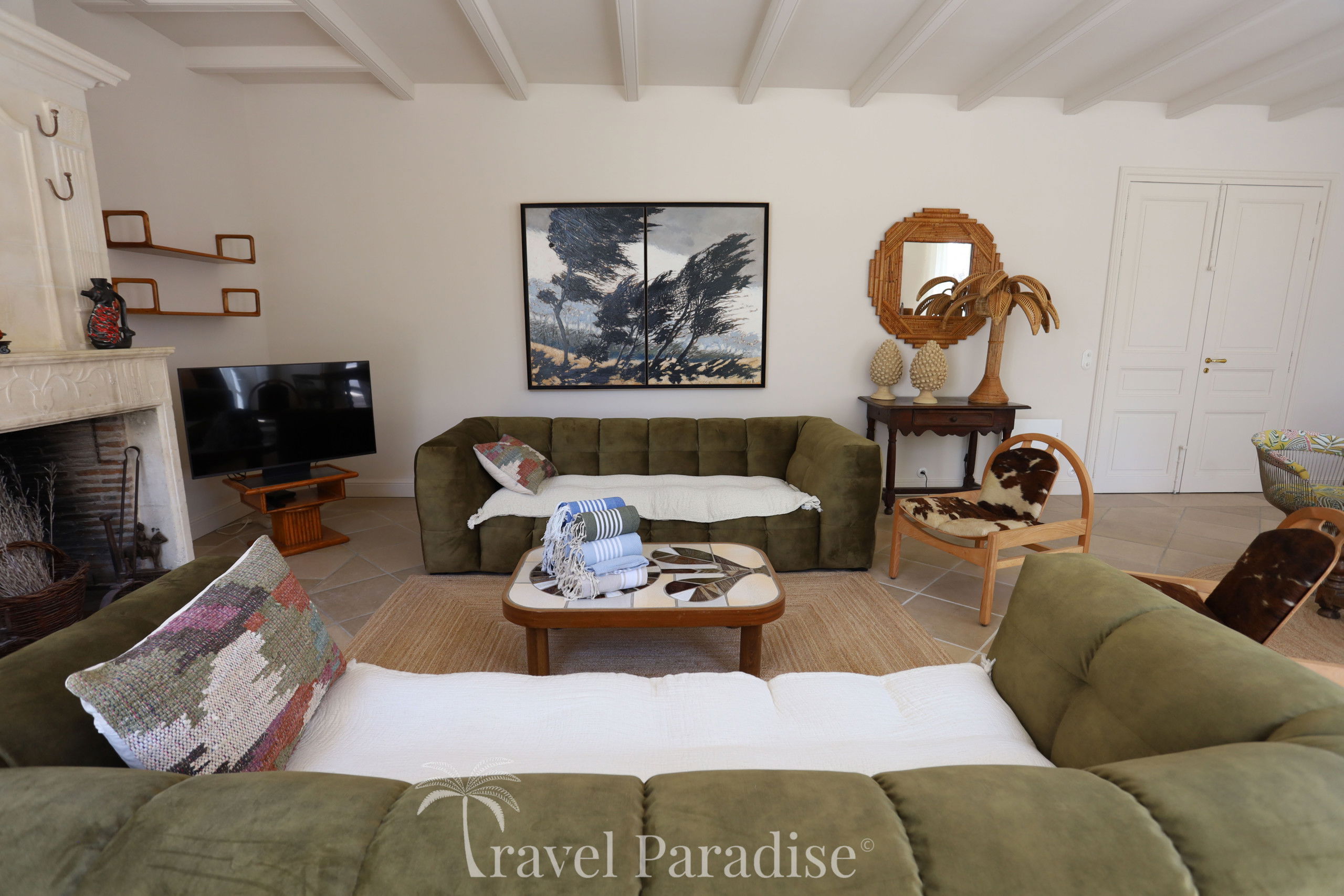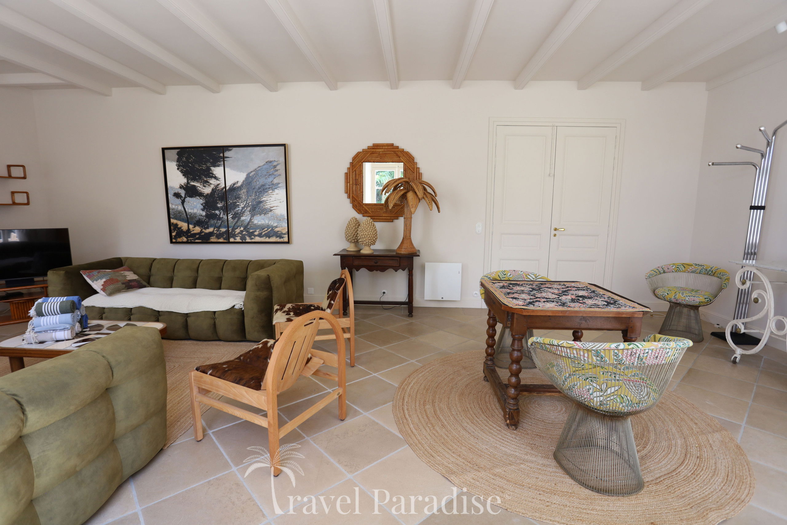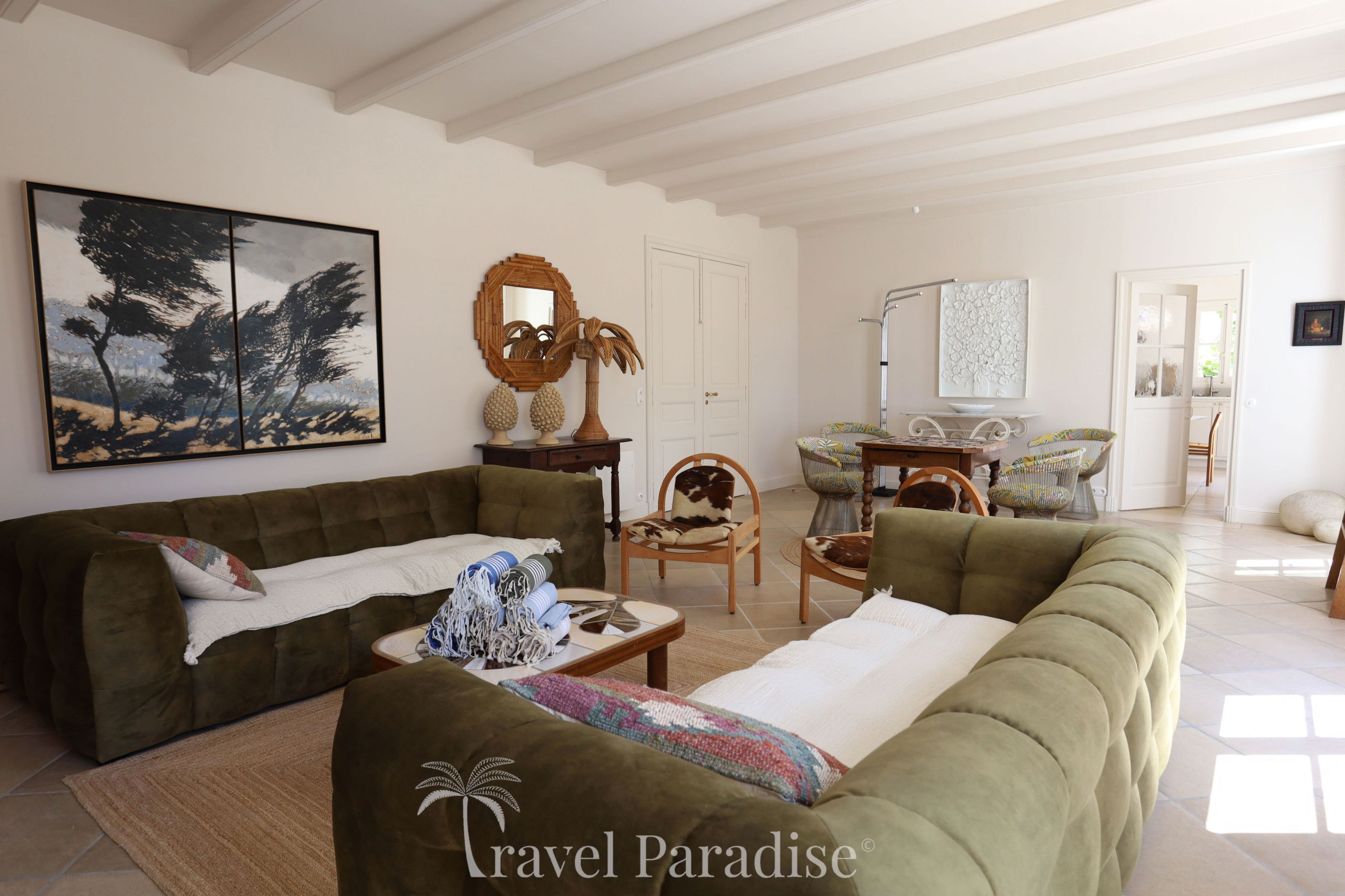 The villa opens onto a vast wooded garden, a true green setting conducive to relaxation and moments of conviviality. Inside, you will discover a refined decoration, punctuated with vintage design furniture pieces that give the whole an warm and unique atmosphere.