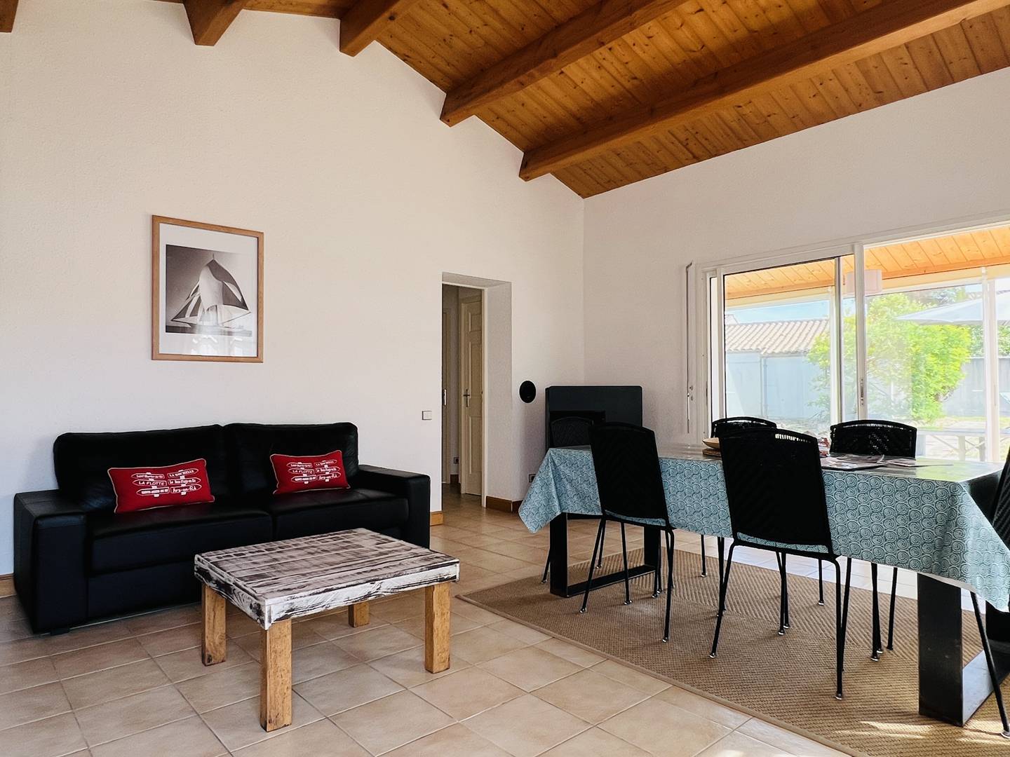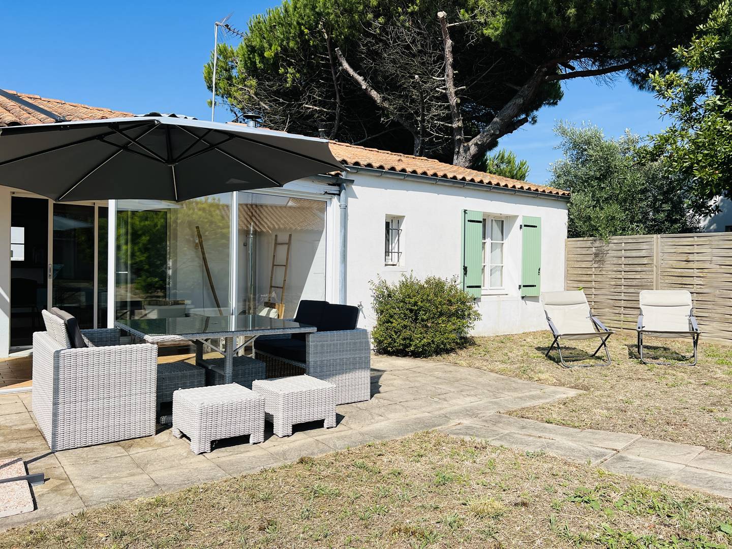Renovated house 600 m from the market, 800 meters from the port and 800 meters from the beach in a quiet environment, offering 2 bedrooms, a large garden and a terrace. Ideal for a family stay! The house offers a living room with open kitchen and living room, a bedroom with double bed 160 x 200 cm - bathroom - WC and a bedroom with 2 single beds 90 x 200 cm + a child bed of 90 x 190 cm for child from 4 to 12 years old Shower room with WC. The kitchen is very well equipped with oven, microwave, dishwasher, fridge-freezer. Outside, a pleasant garden with terrace invites you to share moments of conviviality around a meal or rest in the deckchairs. You can park your vehicles within the grounds of the property.