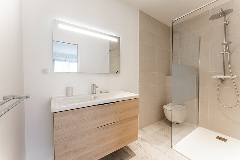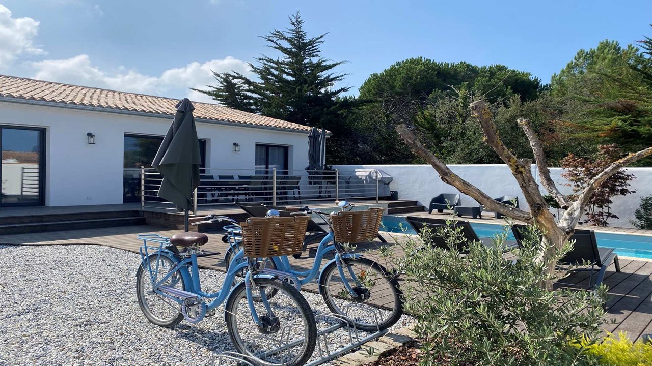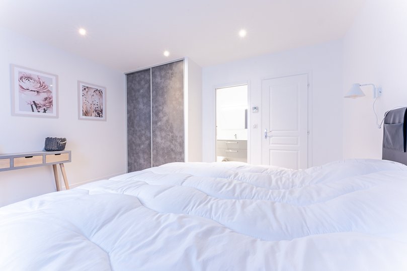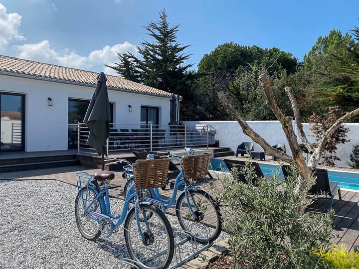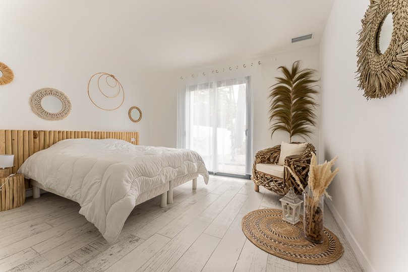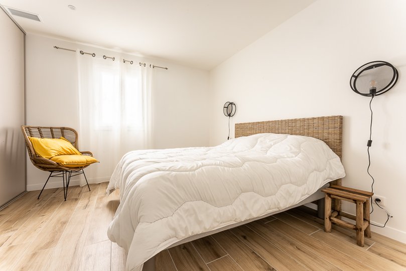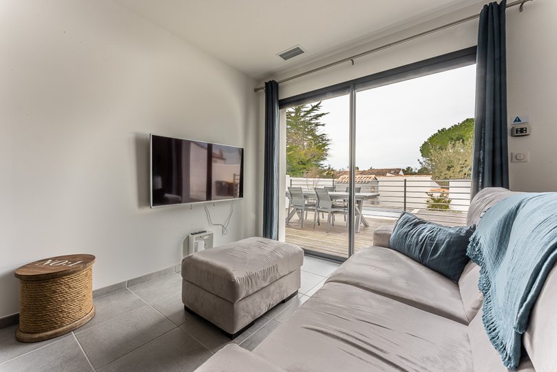 You will appreciate the wooden terrace with an area of ??32m², accessible directly from the living room. It is equipped with a barbecue for your outdoor meals and sunbeds to enjoy the sunny swimming pool.