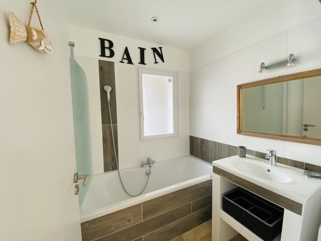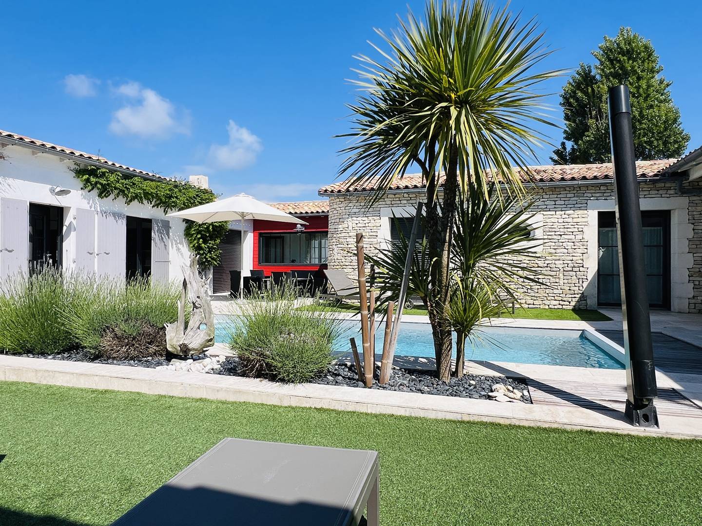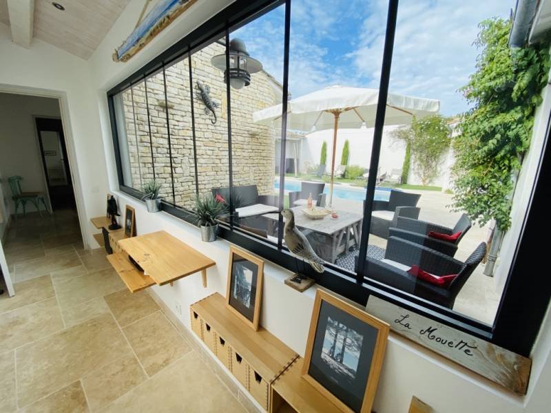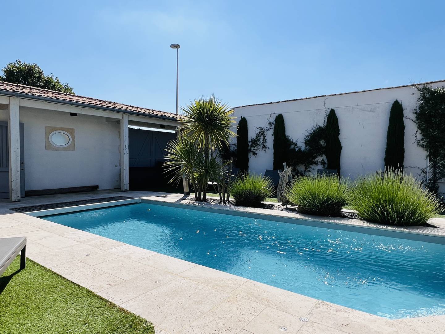 Outside, you will enjoy the two separate spaces out of sight. On one side, a beautiful south facing terrace with aperitif area, garden, deckchairs and swimming pool of 7x3m heated salt (from April to September weather) and secure with electric shutter. On the other side,
