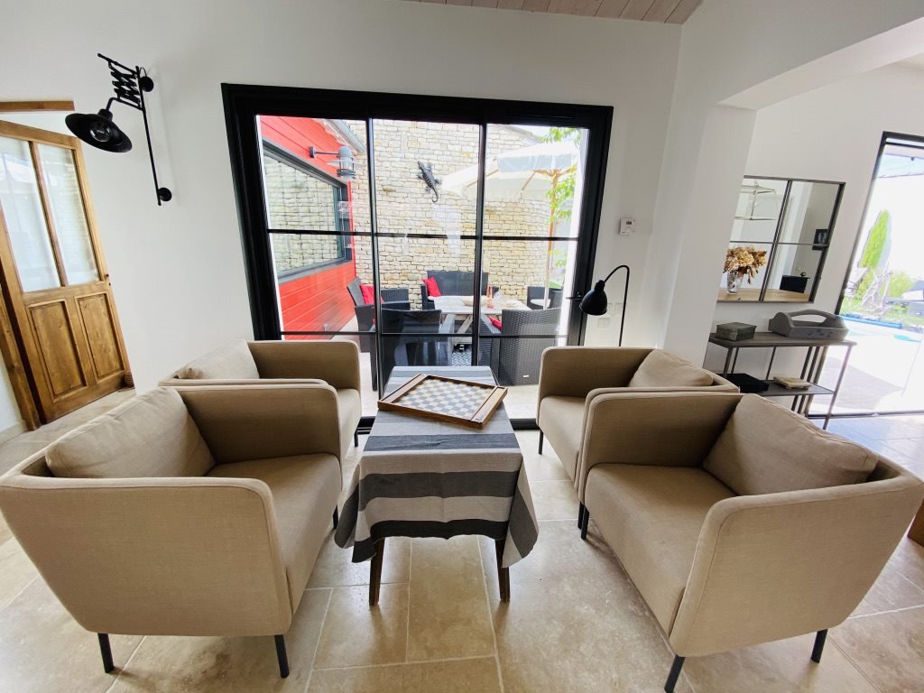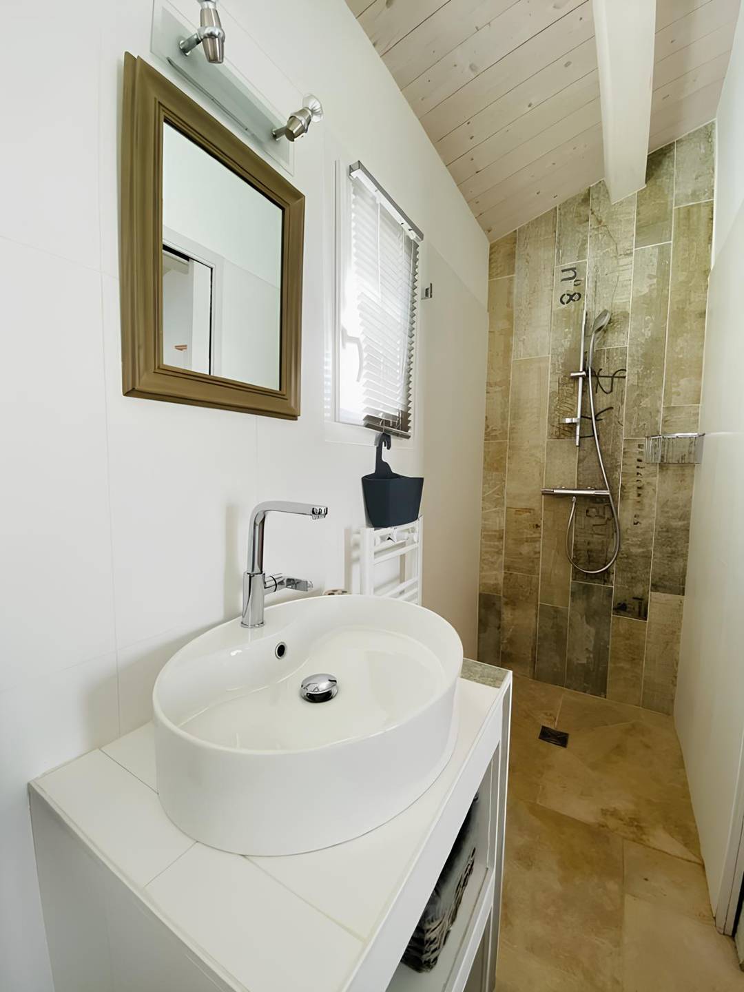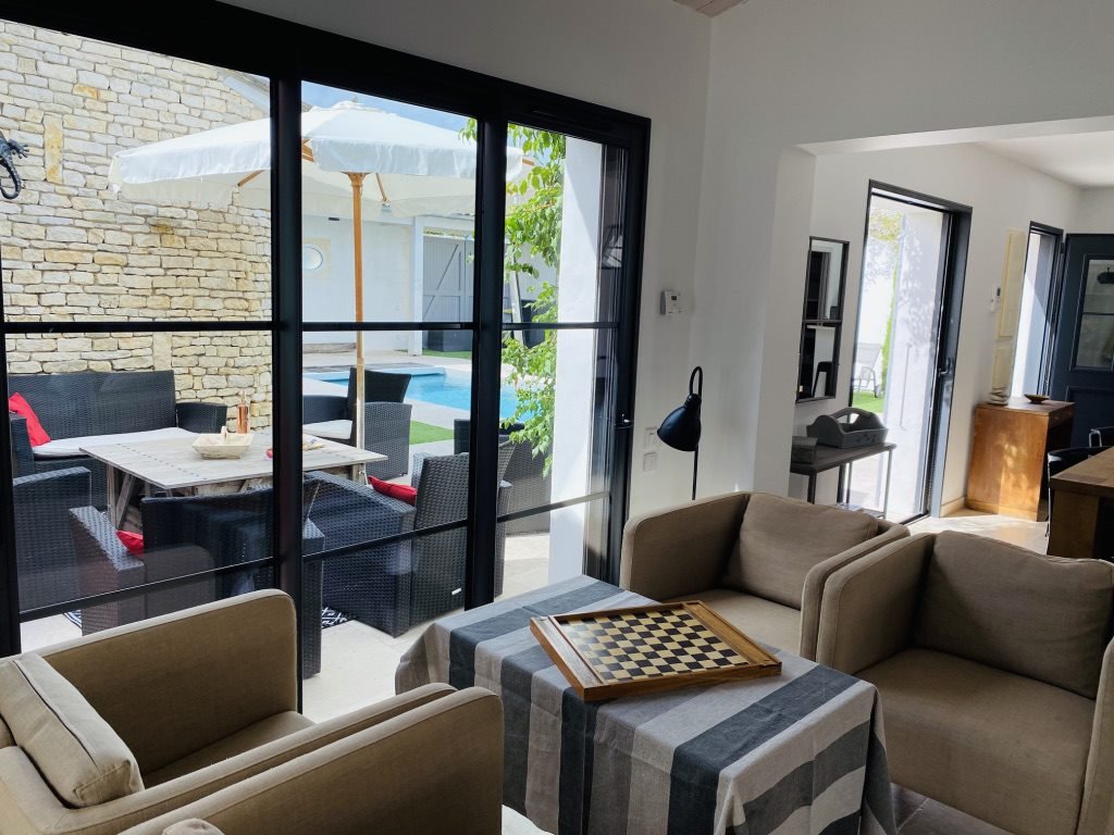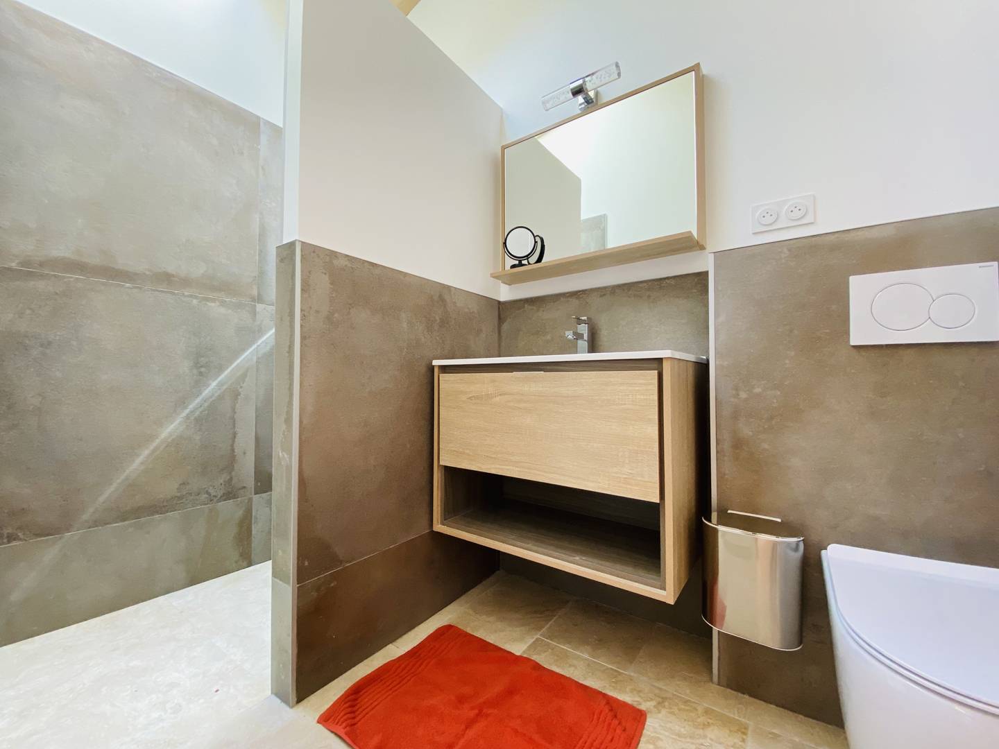 Outside, you will enjoy the two separate spaces out of sight. On one side, a beautiful south facing terrace with aperitif area, garden, deckchairs and swimming pool of 7x3m heated salt (from April to September weather) and secure with electric shutter. On the other side,