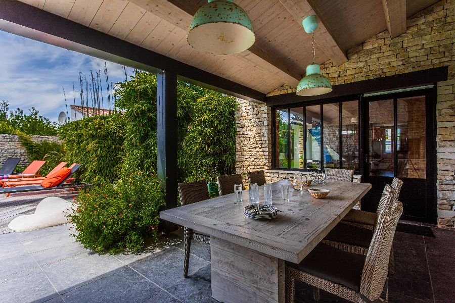 Come and recharge your batteries in this magnificent property, tastefully decorated and furnished, facing south, ideally located a few minutes walk from the Bois-Plage market, Gollandières beach and close to cycle paths. You will appreciate the volumes of the living spaces opening onto the garden with terrace, garden furniture, summer courtyard with gas plancha allowing you to have lunch/dinner outside, and swimming pool area with deckchairs. The swimming pool is heated (from April to October depending on the weather) and secured by an electric cover. This architect-designed villa will seduce you with the quality of the equipment and its comfort, such as the lounge areas inviting conviviality and the fully equipped fitted kitchen. The villa has plenty of storage and a laundry room with washing machine and dryer. The kitchen is very well equipped with induction hob, extractor, oven, microwave, dishwasher, fridge and American fridge-freezer. The sleeping area includes five bedrooms, four shower rooms, a bathroom and 4 toilets. An upright piano and a bicycle garage are at your disposal. You can park your vehicles in the public car parks located nearby. Animals allowed after agreement of the owners