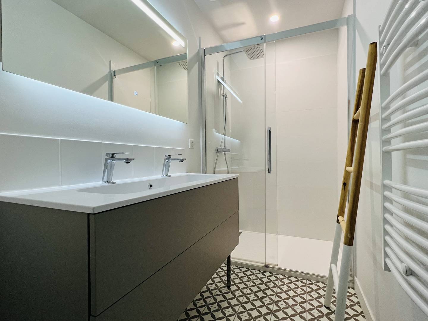 Enjoy the volumes of the living spaces open to the garden with terrace, garden furniture, summer courtyard with plancha allowing lunch/ dinner outside, and pool area with deckchairs. The pool is heated (from April to October depending on the weather) and secured by an electric shutter.