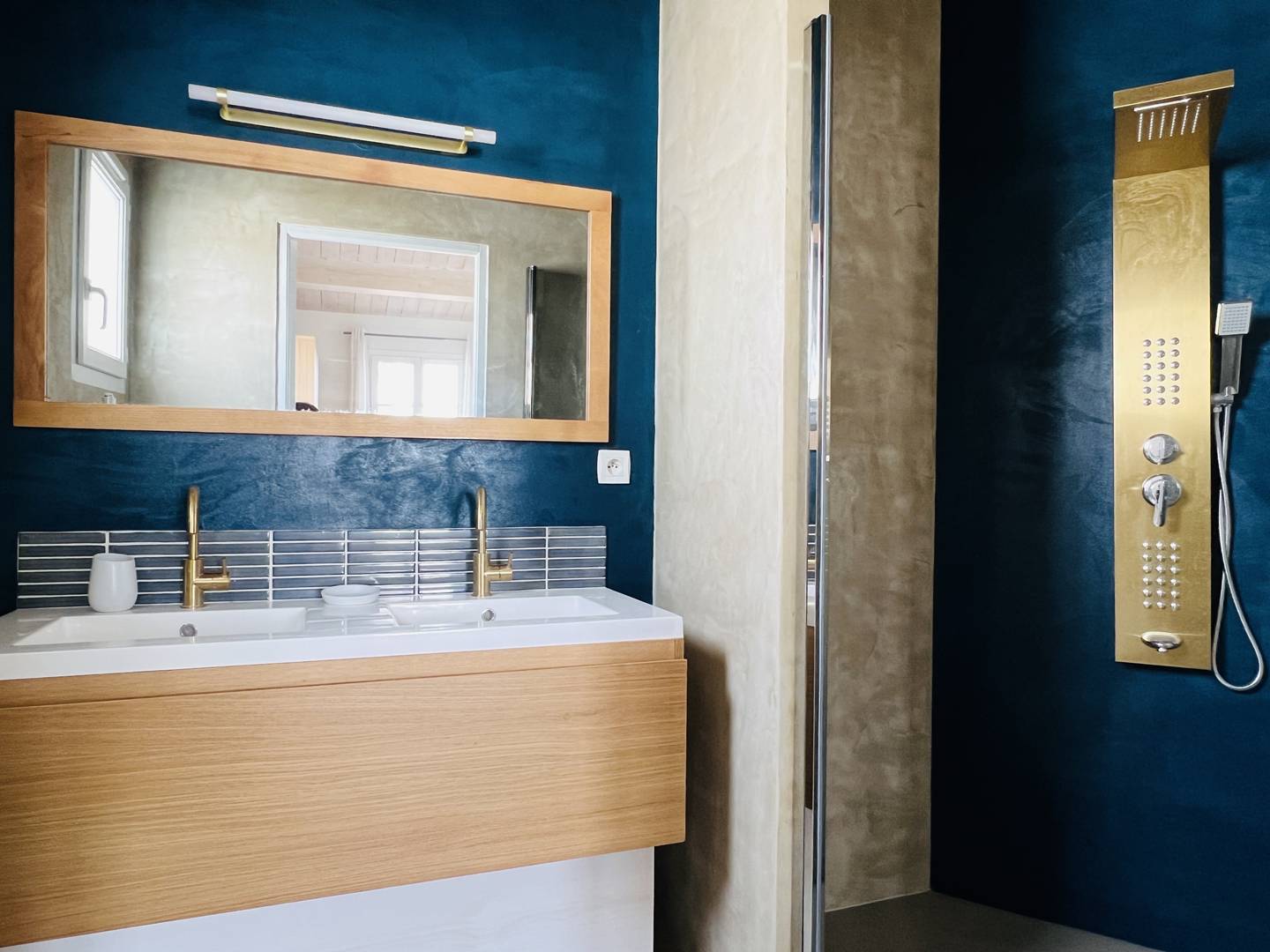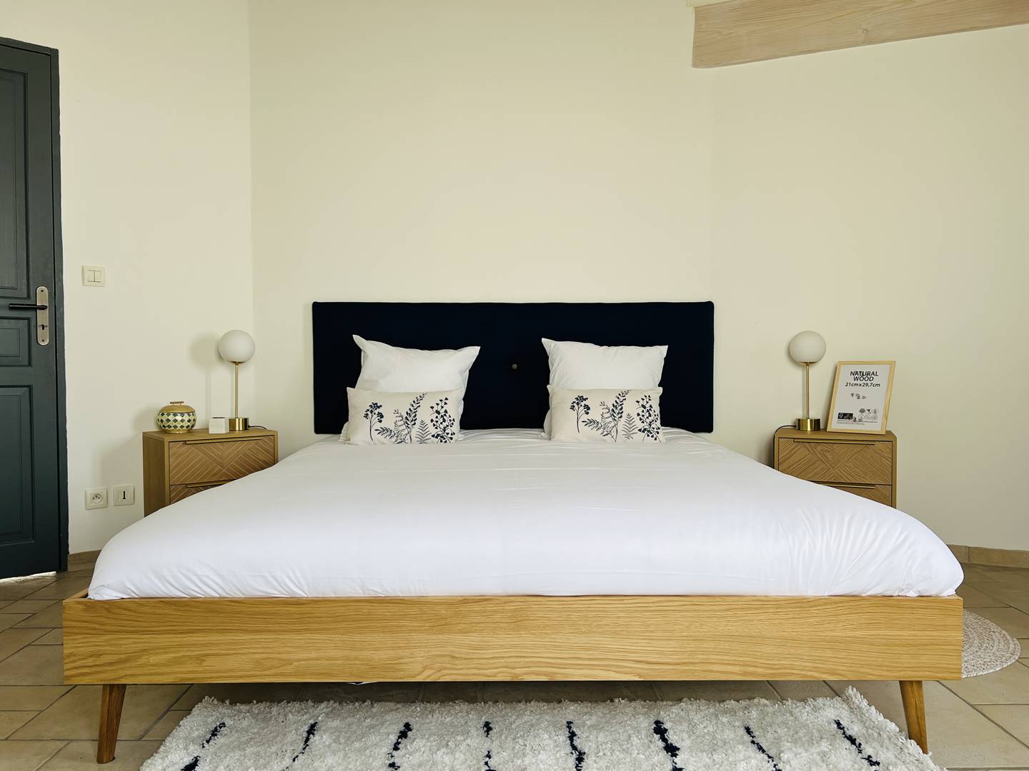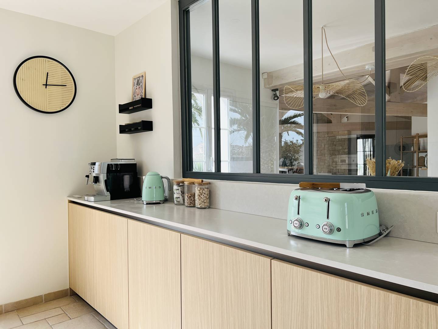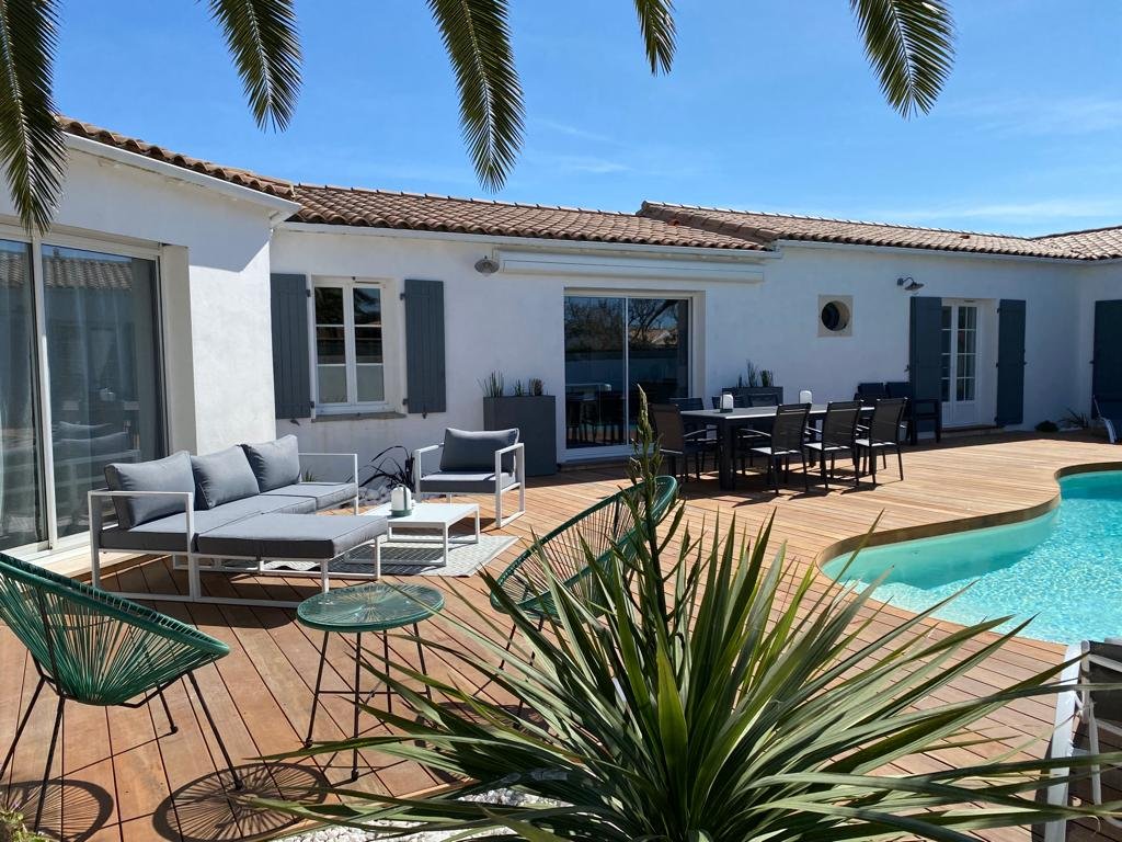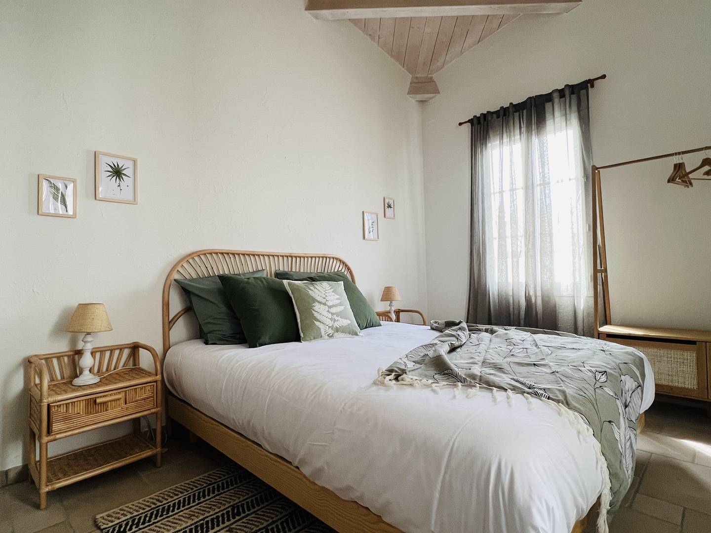 You will appreciate its comfort, its quality equipment, its neat decoration in natural colors, and the superb outdoor space with its swimming pool and its two magnificent palm trees. The location is ideal, close to the beach and the center of the village. Villa on one level, pleasant to live in, composed of a beautiful living room with corner sofa, a dining room and a large fully equipped fitted kitchen. You will also have a scullery with a second fridge-freezer, washing machine and dryer. The sleeping area can accommodate 12 travelers. It includes five bedrooms including two master suites with shower room. Four bedrooms are equipped with a double bed (a 180x200 cm bed, two 160x200 beds and a 140x190 bed), and a children's room is equipped with a bathroom, two bunk beds and two very comfortable single futon beds. A separate bathroom with bathtub is always appreciated for children. Outside, a magnificent west-facing terrace invites you to relax quietly in the garden furniture, by the pool on the deckchairs, or around a meal under the shade cloth. The pool is secure and heated from April to October (depending on the weather). You can park your vehicle in the garage of the villa or in the impasse (free parking).
