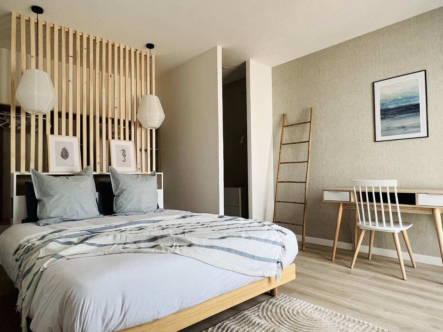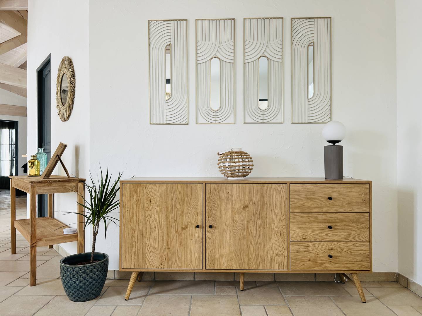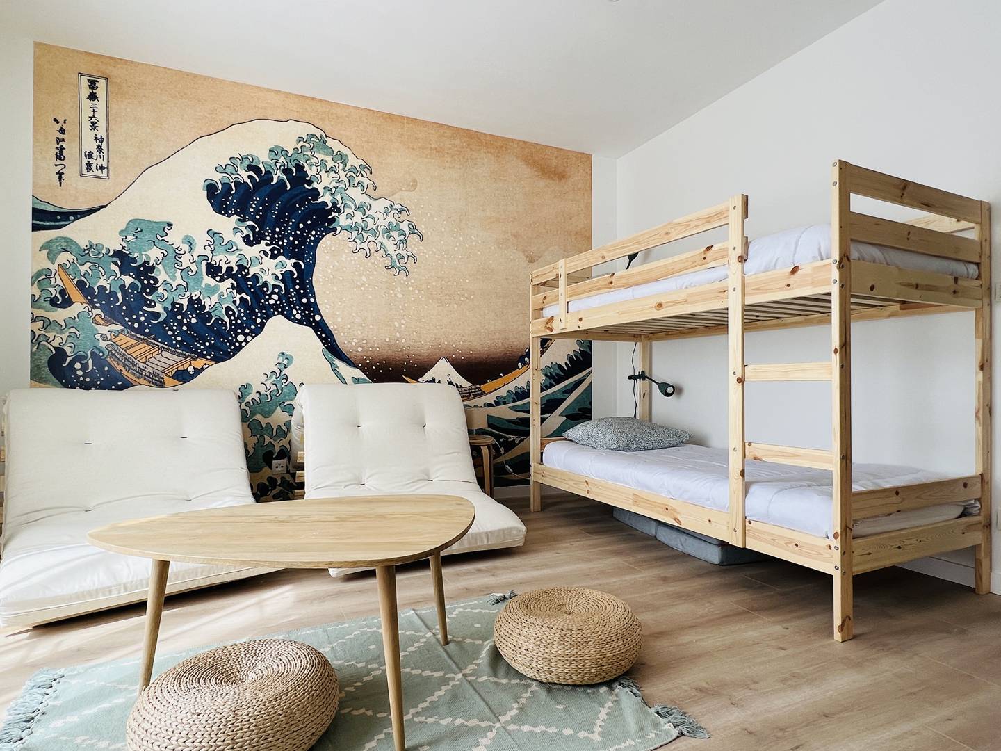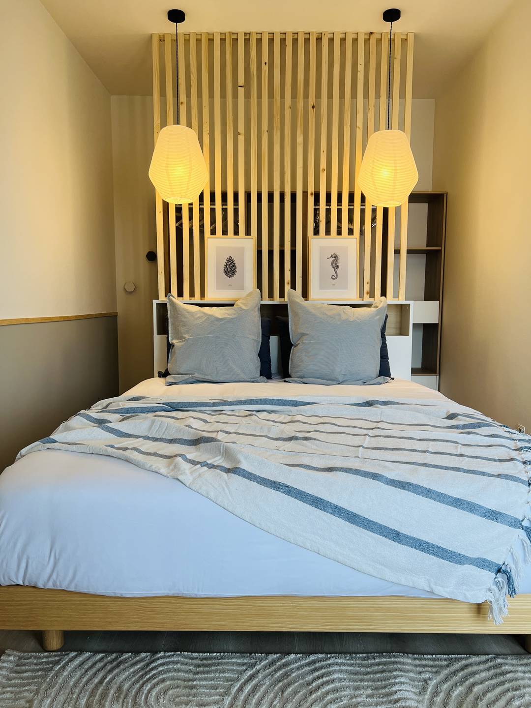 You will appreciate its comfort, its quality equipment, its neat decoration in natural colors, and the superb outdoor space with its swimming pool and its two magnificent palm trees. The location is ideal, close to the beach and the center of the village. Villa on one level, pleasant to live in, composed of a beautiful living room with corner sofa, a dining room and a large fully equipped fitted kitchen. You will also have a scullery with a second fridge-freezer, washing machine and dryer. The sleeping area can accommodate 12 travelers. It includes five bedrooms including two master suites with shower room. Four bedrooms are equipped with a double bed (a 180x200 cm bed, two 160x200 beds and a 140x190 bed), and a children's room is equipped with a bathroom, two bunk beds and two very comfortable single futon beds. A separate bathroom with bathtub is always appreciated for children. Outside, a magnificent west-facing terrace invites you to relax quietly in the garden furniture, by the pool on the deckchairs, or around a meal under the shade cloth. The pool is secure and heated from April to October (depending on the weather). You can park your vehicle in the garage of the villa or in the impasse (free parking).