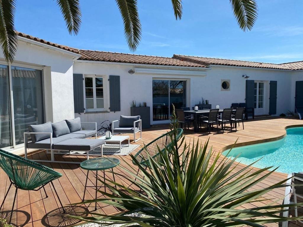 Located in the pretty village of Bois-Plage. You will appreciate its comfort, its quality equipment, its neat decoration in natural colors, and the superb outdoor space with its swimming pool and its two magnificent palm trees. The location is ideal, close to the beach and the center of the village. A villa on one level, pleasant to live in, composed of a beautiful living room with corner sofa, a dining room and a large fully equipped fitted kitchen. You will also have a scullery with a second fridge-freezer, washing machine and dryer. The sleeping area can accommodate 10 travelers. It includes five bedrooms including two master suites with shower room. Four bedrooms are equipped with a double bed (a 180x200 cm bed, two 160x200 beds and a 140x190 bed), and a children's room is equipped with two bunk beds and a bathroom. A separate bathroom with bathtub is always appreciated for children. Outside, a magnificent west-facing terrace invites you to relax quietly in the garden furniture, by the pool on the deckchairs, or around a meal under the shade cloth. The pool is secure and heated from April to October (depending on the weather). You can park your vehicle in the garage of the villa or in the impasse (free parking).
