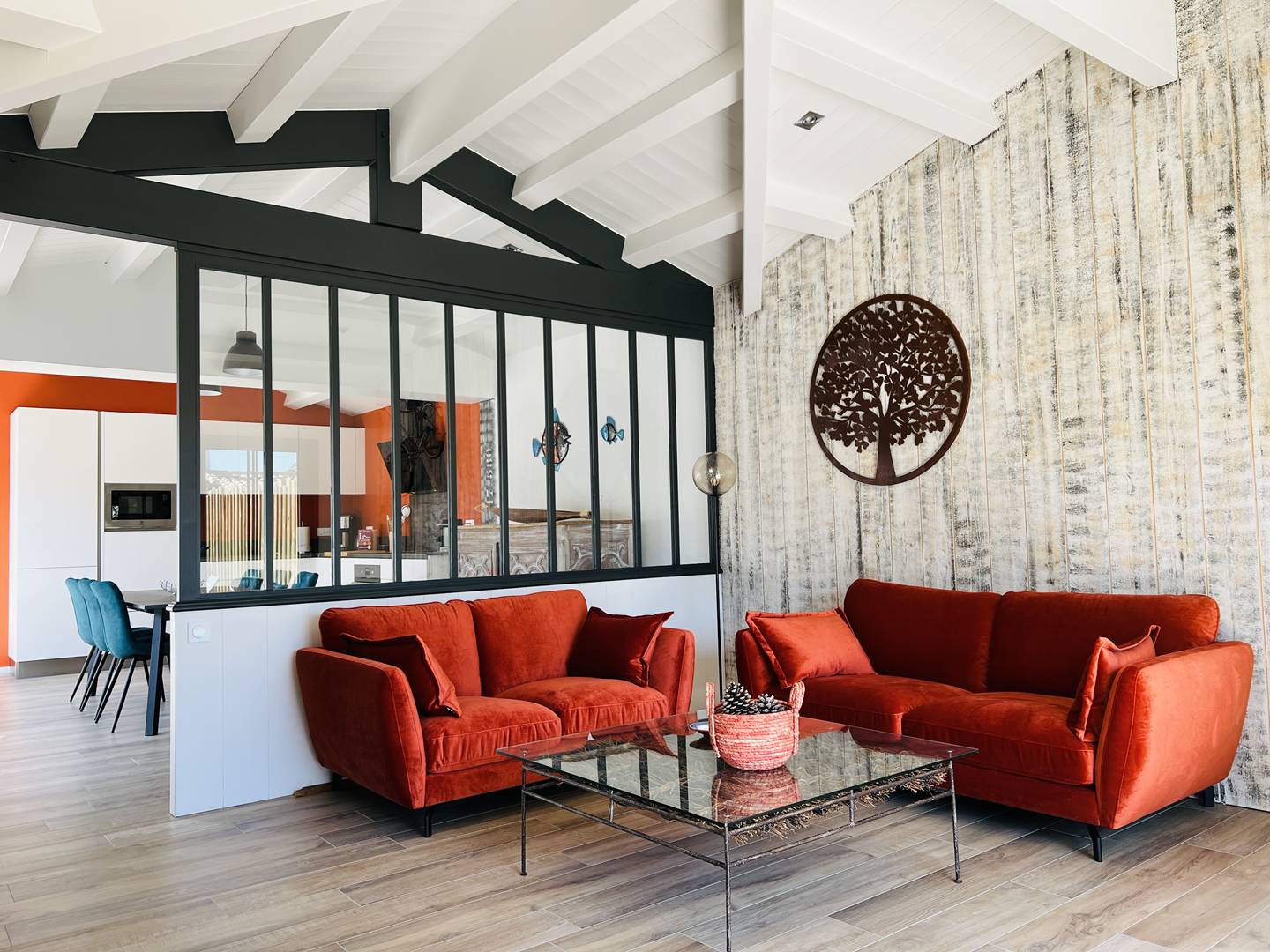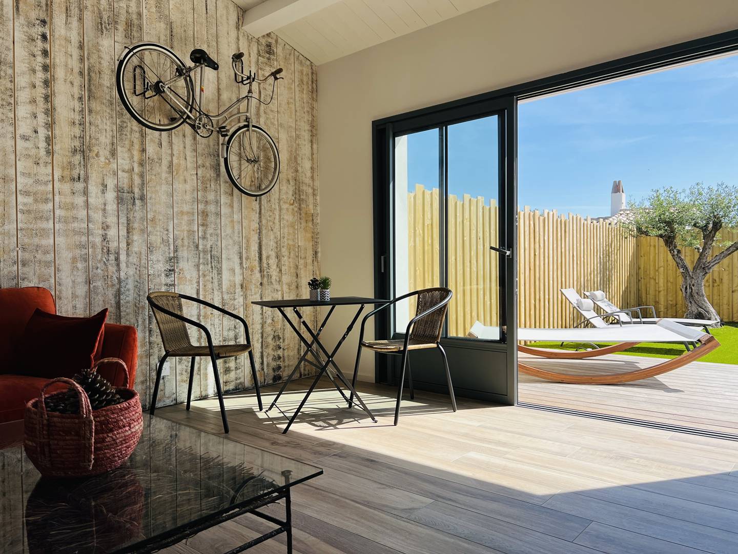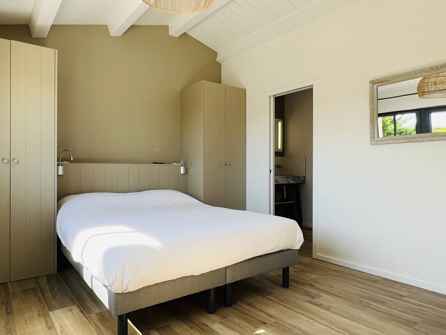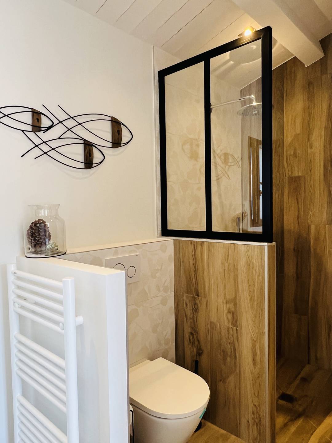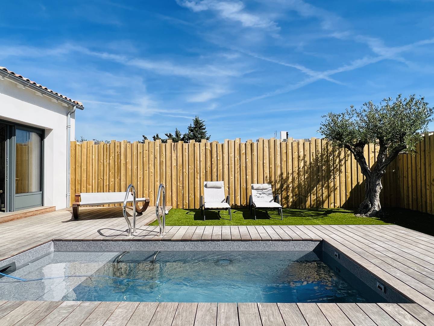 Treat yourself to a relaxing stay for the whole family or with friends in this beautiful house with a nicely decorated swimming pool, carefully equipped for your comfort, in a quiet environment, close to the beach, cycle paths and the center of the charming village of Bois. -Beach ! The entrance serves a large warm and bright living room composed of a fitted kitchen and a beautiful dining table. The kitchen opens onto a outdoor space with garden table, wall-mounted barbecue and a water point. The awning allows you to enjoy a meal in the shade or in the sun at your convenience. You will also enjoy a very bright living room with a view of the swimming pool and the garden. The garden offers a glimpse of sweet moments of idleness comfortably seated by the pool or on the terrace having a coffee. The swimming pool is secured with an electric rolling shutter. It measures 4x2 meters and is heated from April to October (depending on the weather). The sleeping area includes three large bedrooms, each with their own bathroom and cupboards with hanging space and shelves. Two bedrooms are equipped with a 160x200cm double bed, and one bedroom is equipped with two 90x200cm single beds that can be combined into a 180x200cm double bed. You will appreciate the beautiful height under the crawling ceilings and the quality equipment (mattress, bathroom). One of the bedrooms has access to a lovely landscaped patio. A laundry room is at your disposal with washing machine, dryer, ironing board, iron, travel cot and baby high chair. Several parking spaces are available and free in front of the house.