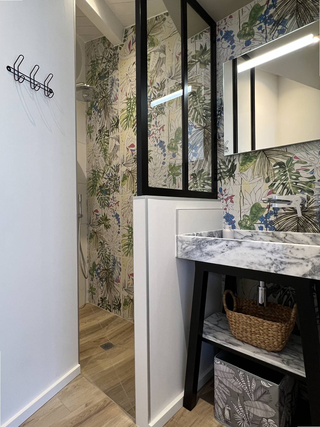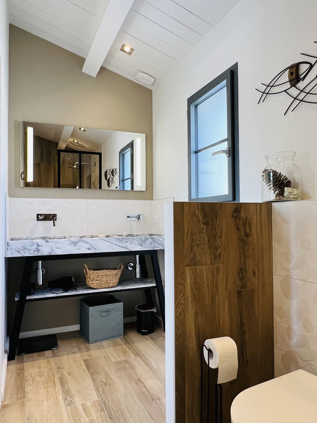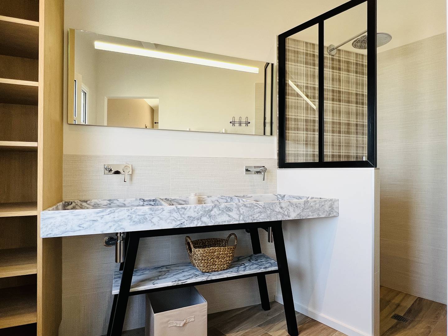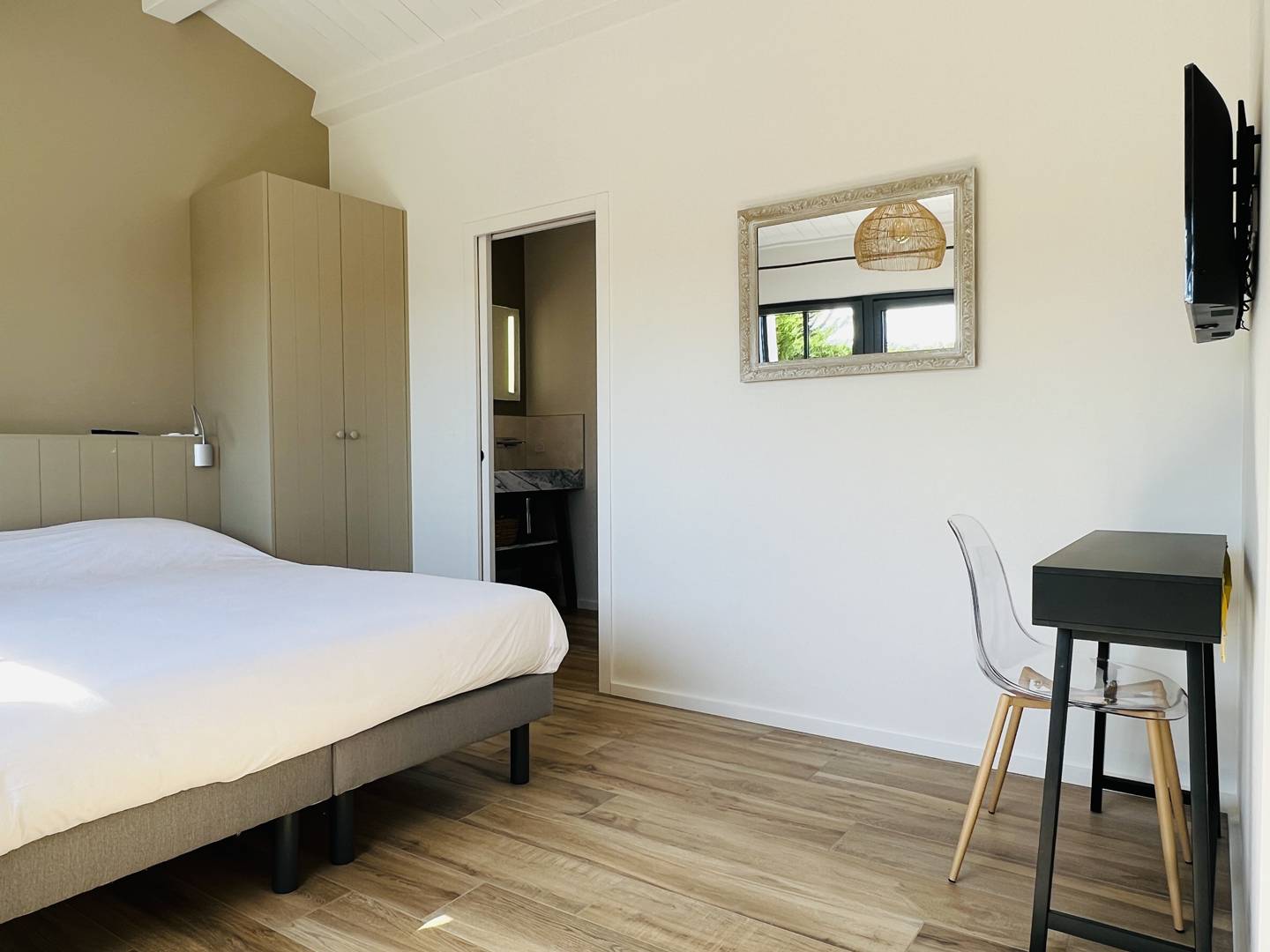 Treat yourself to a relaxing stay for the whole family or with friends in this beautiful house with a nicely decorated swimming pool, carefully equipped for your comfort, in a quiet environment, close to the beach, cycle paths and the center of the charming village of Bois. -Beach ! The entrance serves a large warm and bright living room composed of a fitted kitchen and a beautiful dining table. The kitchen opens onto a outdoor space with garden table, wall-mounted barbecue and a water point. The awning allows you to enjoy a meal in the shade or in the sun at your convenience. You will also enjoy a very bright living room with a view of the swimming pool and the garden. The garden offers a glimpse of sweet moments of idleness comfortably seated by the pool or on the terrace having a coffee. The swimming pool is secured with an electric rolling shutter. It measures 4x2 meters and is heated from April to October (depending on the weather). The sleeping area includes three large bedrooms, each with their own bathroom and cupboards with hanging space and shelves. Two bedrooms are equipped with a 160x200cm double bed, and one bedroom is equipped with two 90x200cm single beds that can be combined into a 180x200cm double bed. You will appreciate the beautiful height under the crawling ceilings and the quality equipment (mattress, bathroom). One of the bedrooms has access to a lovely landscaped patio. A laundry room is at your disposal with washing machine, dryer, ironing board, iron, travel cot and baby high chair. Several parking spaces are available and free in front of the house.