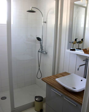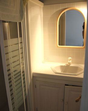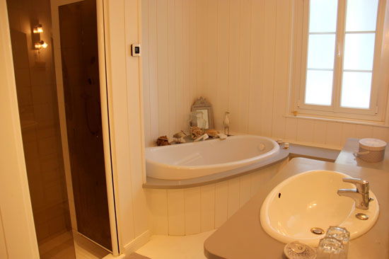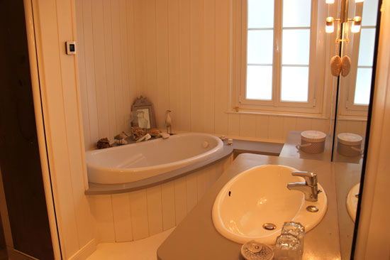 Main part : Entrance with cupboard, wc and hand basin - separate Kitchen – dining room, Living Room with fireplace, Tv area – separate toilet – shower Room with washbasin – Bedroom with 3 beds of 90, office, cupboard – Bedrooms with 1 bed of 160, cupboard – Bedrooms with 1 bed 160), fireplace, wardrobe, bathroom, bath, shower, sink
