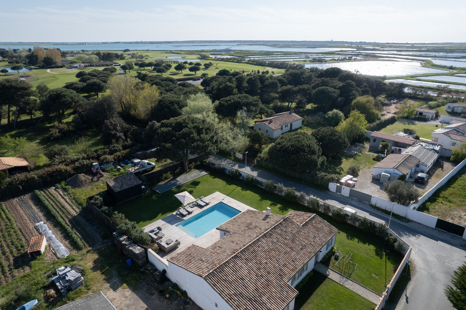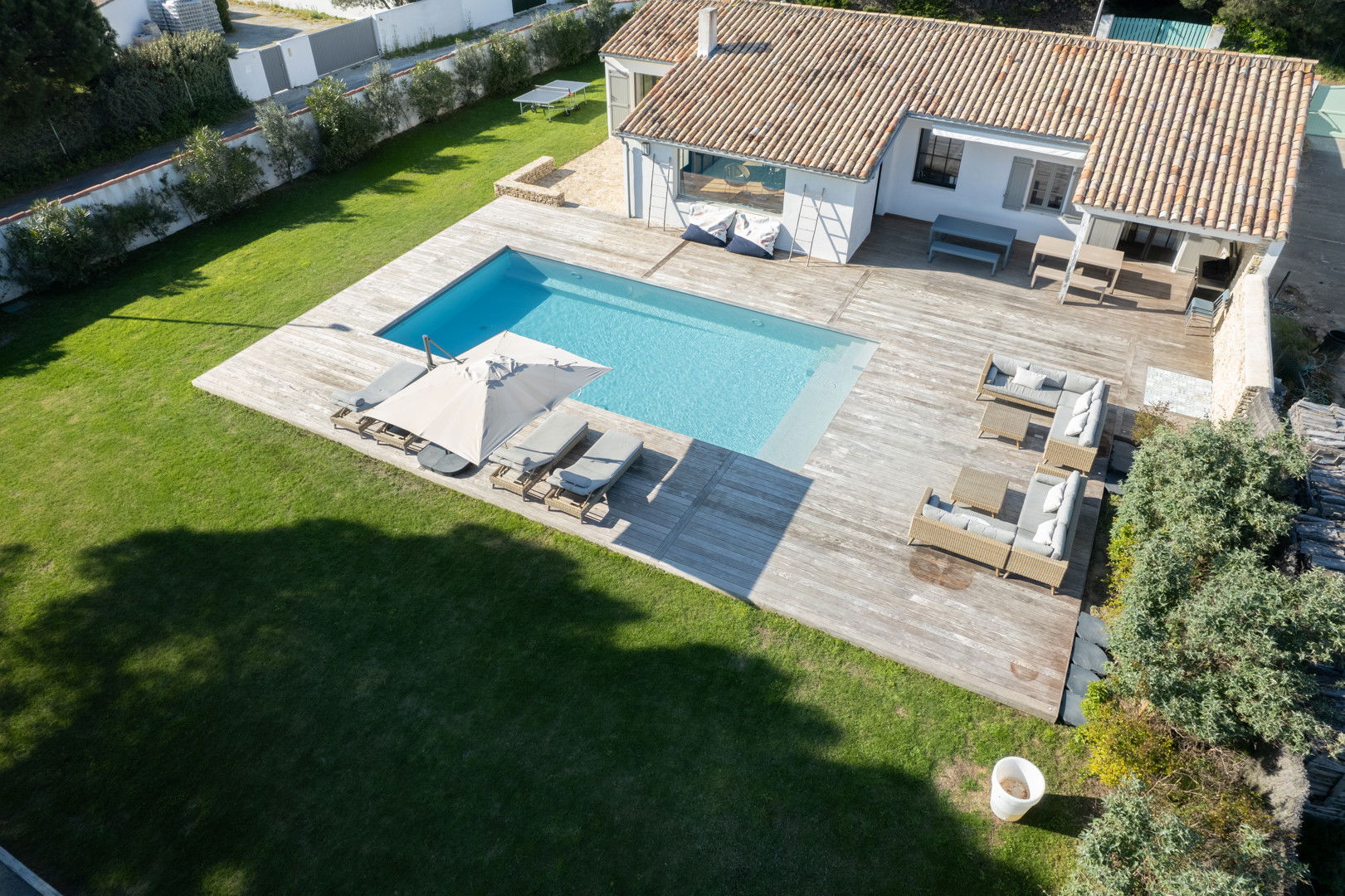 The villa Madame, located on the Ile de Ré, in the charming village of Les Portes en Ré, will seduce you for a top-of-the-range rental with its heated swimming pool, its large enclosed garden with not overlook and its south-facing terrace.