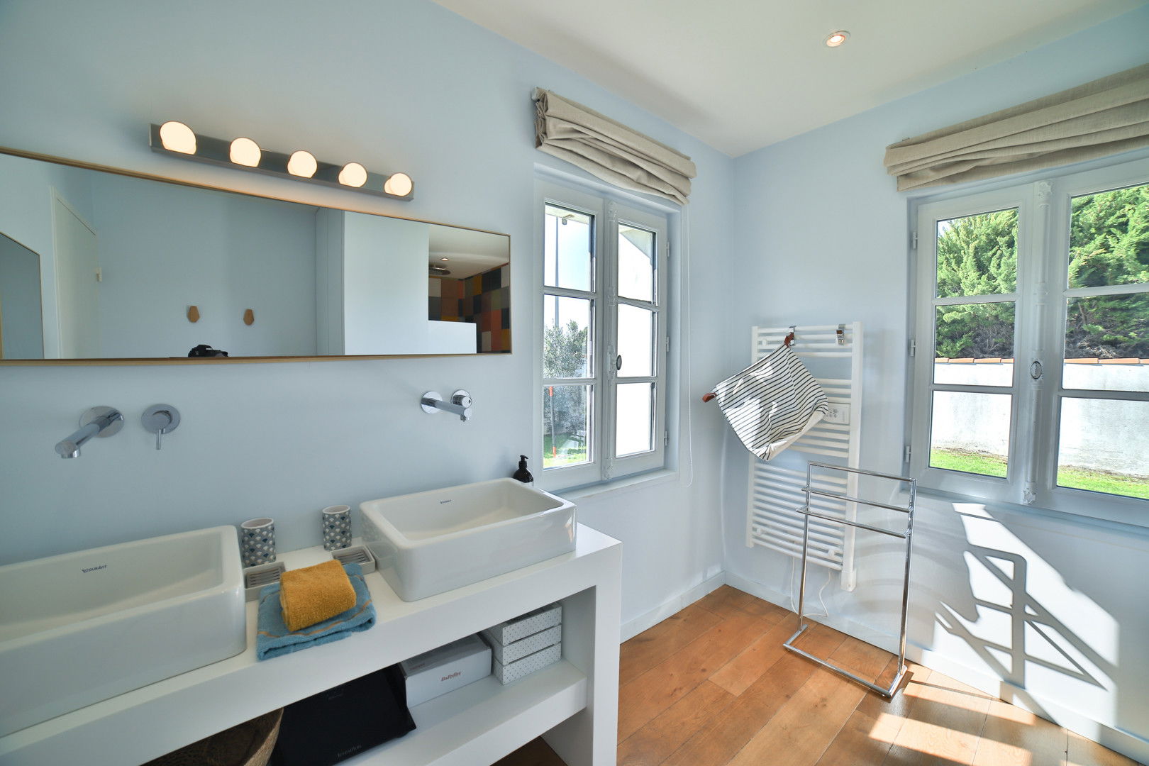 - its 5 bedrooms, two of which have private shower rooms and a large bathroom with bath, shower and double sink.