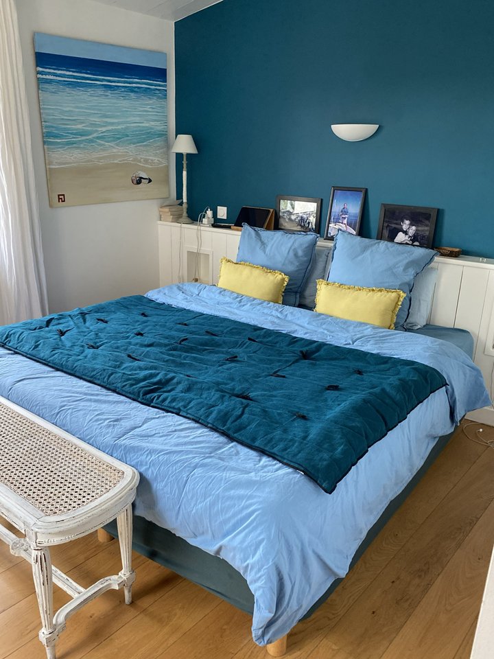 à l’étage, 1 chambre avec un lit de 160 ( couettes oreillers carrés)