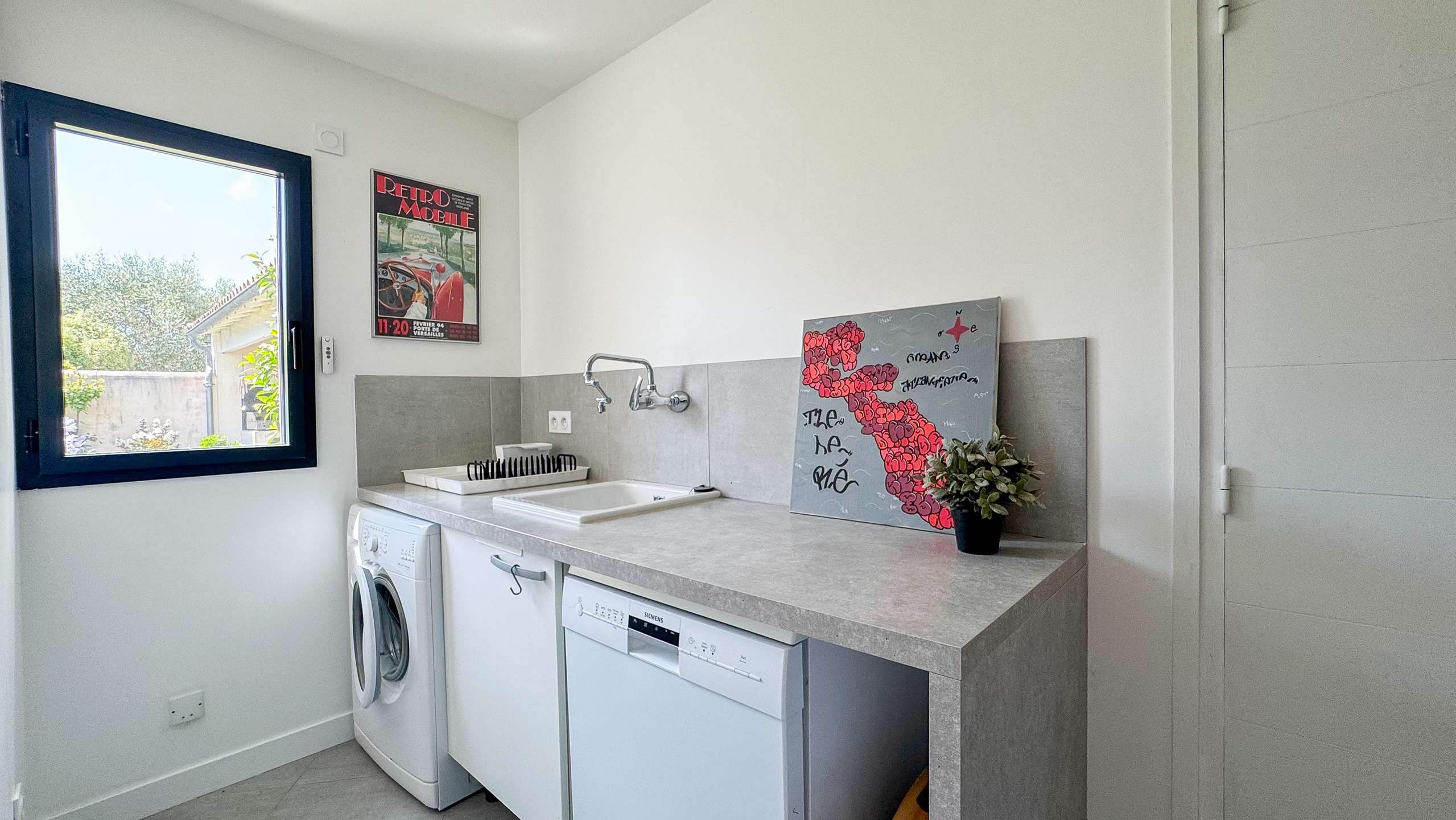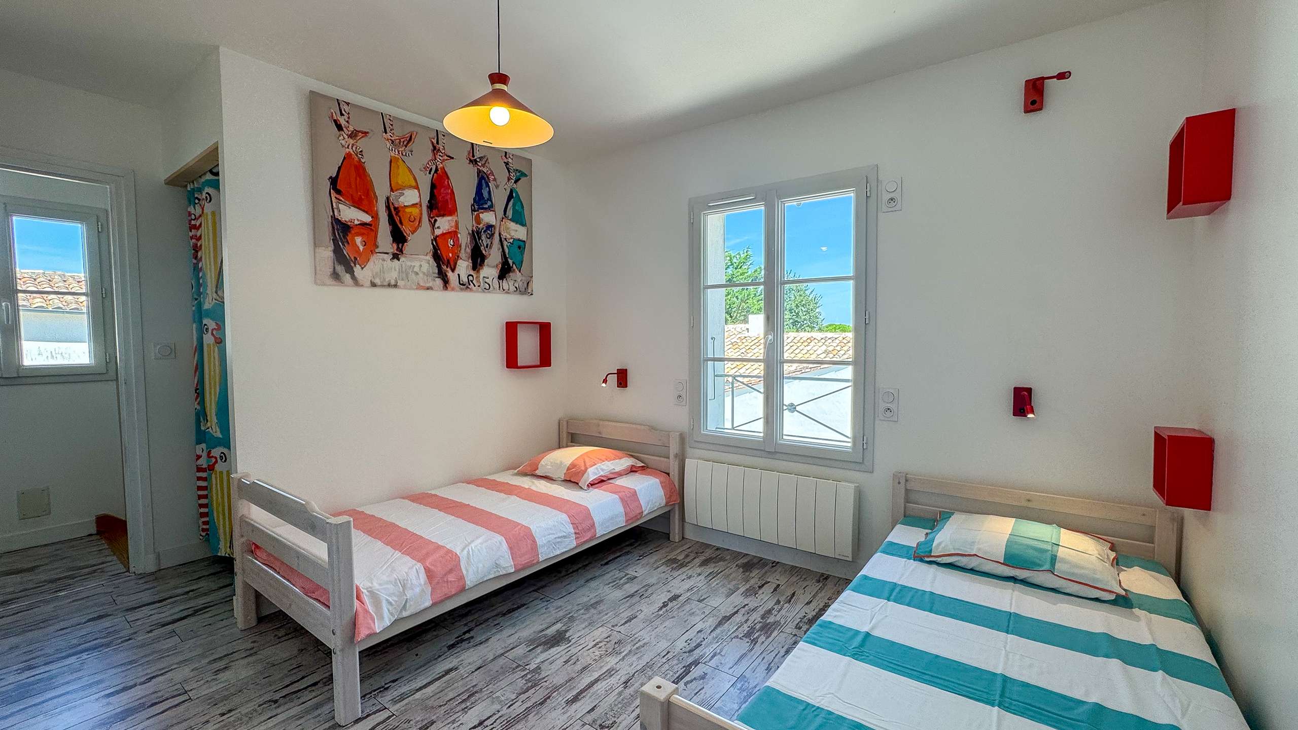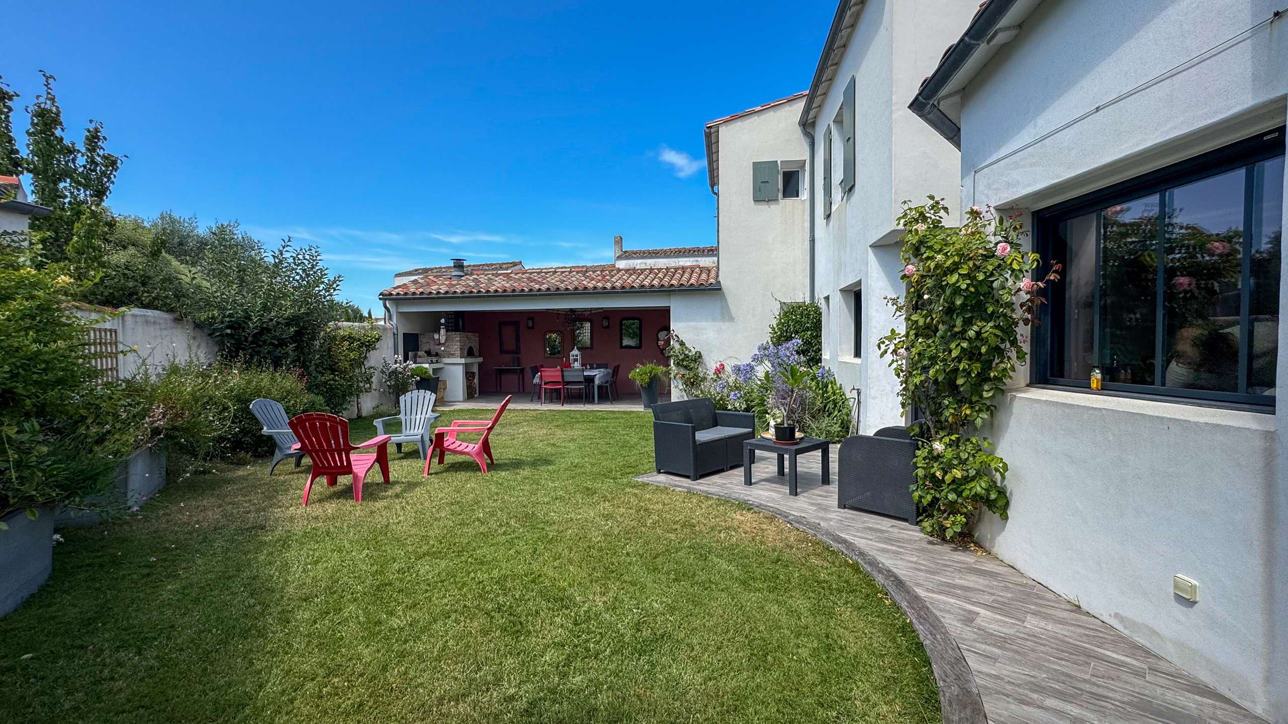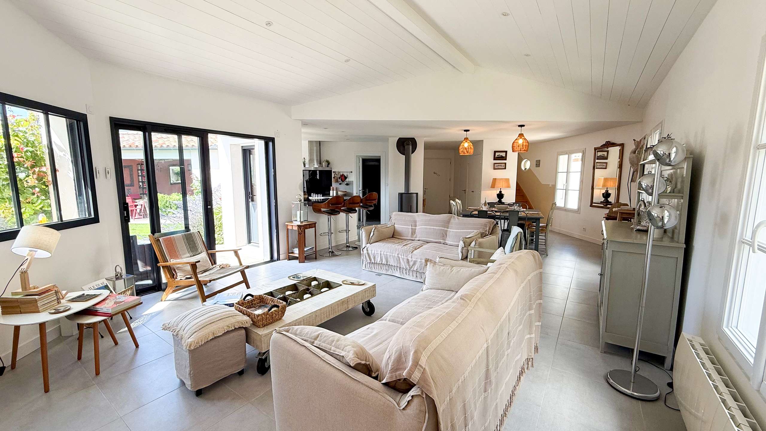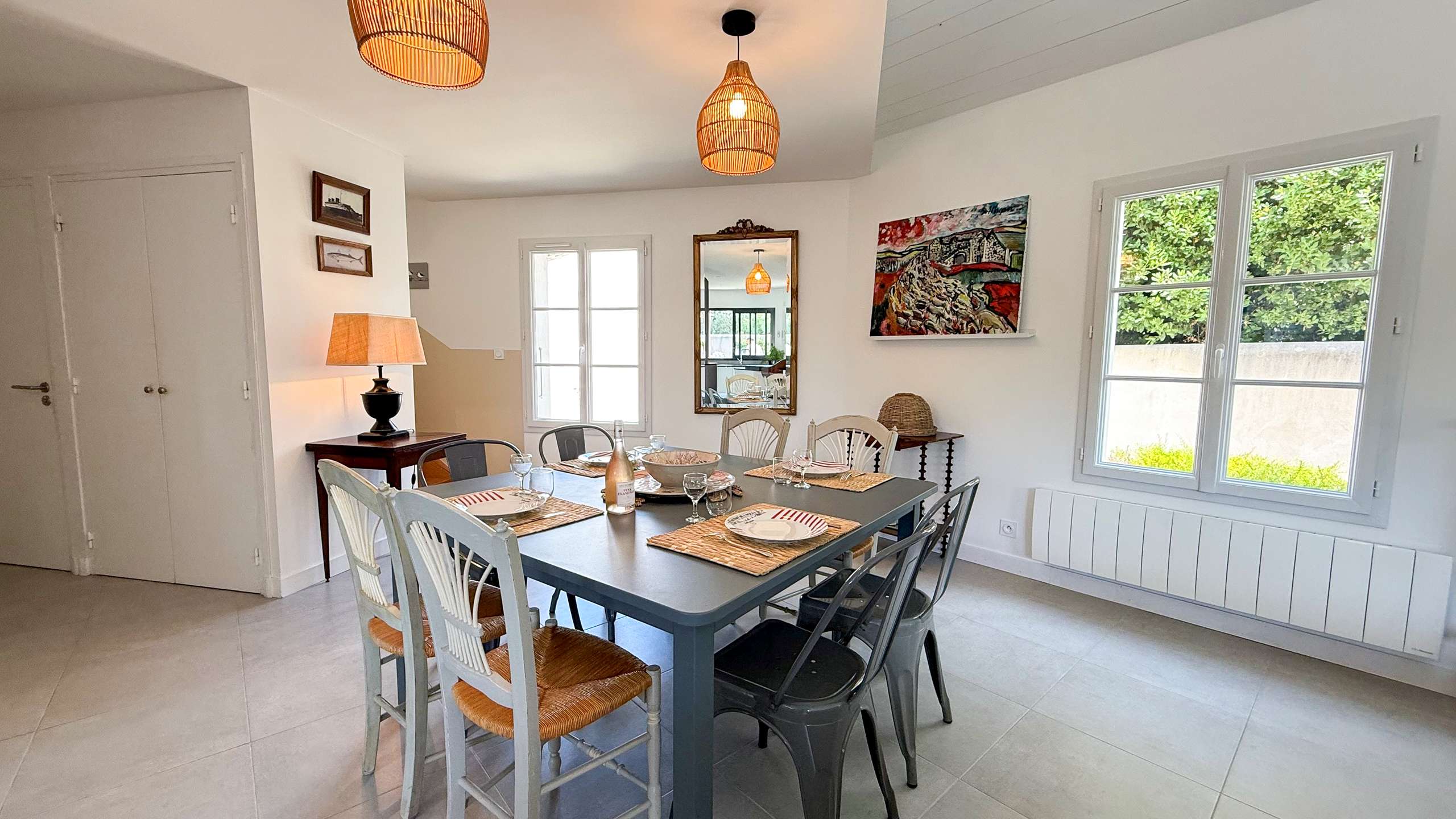Holiday home in Loix, tastefully decorated, ideal for 6 guests. 3 bedrooms, 2 bathrooms, bright living room, fully equipped kitchen with island, utility room (American fridge, dishwasher, washing machine). Enclosed garden with covered terrace, garden furniture, plancha grill, and outdoor shower. Bike garage with extra fridge and dryer. Wi-Fi. Free parking 450 m away. Close to the market and cycle paths. FINAL CLEANING AND LINEN MANDATORY (bed linen, towels, bath mat, kitchen towels).
