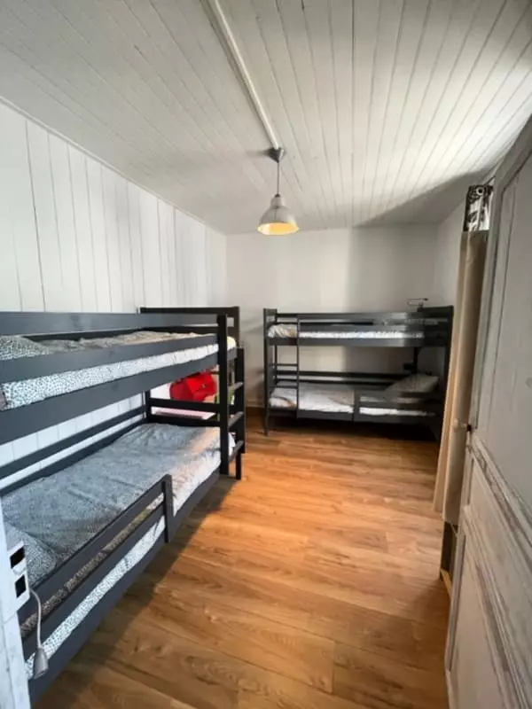 - three bedrooms with two bunk beds, two double beds and a baby bed;
