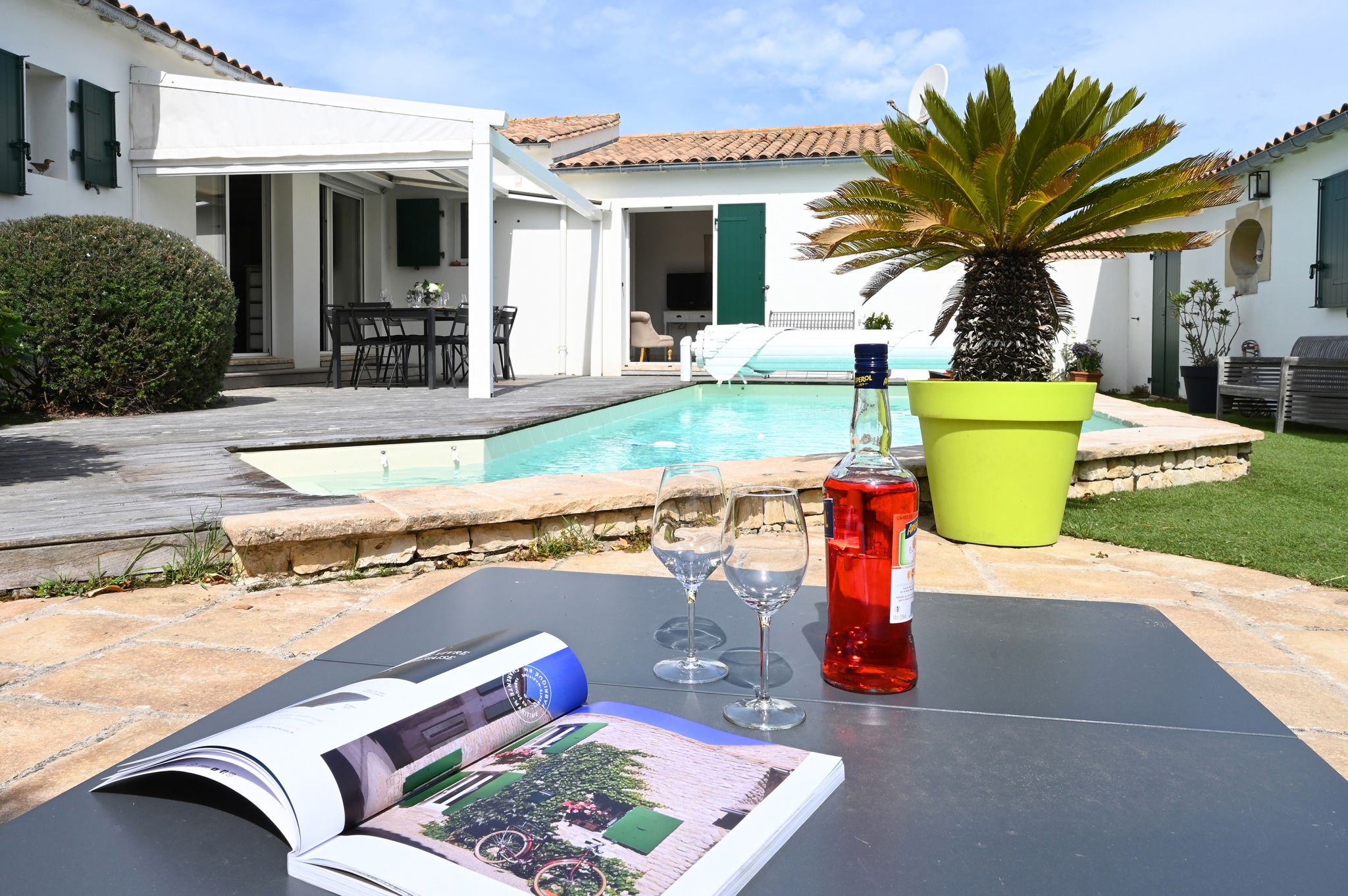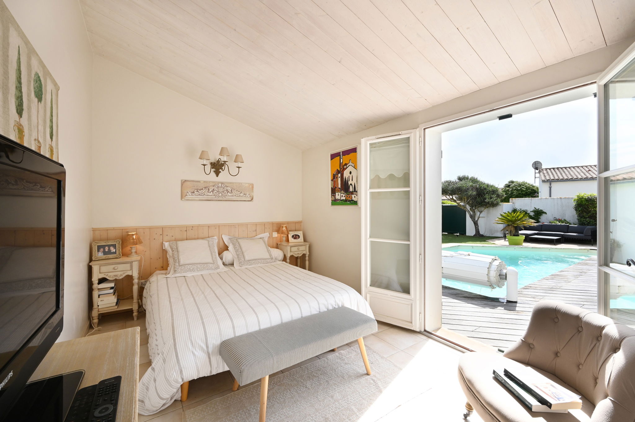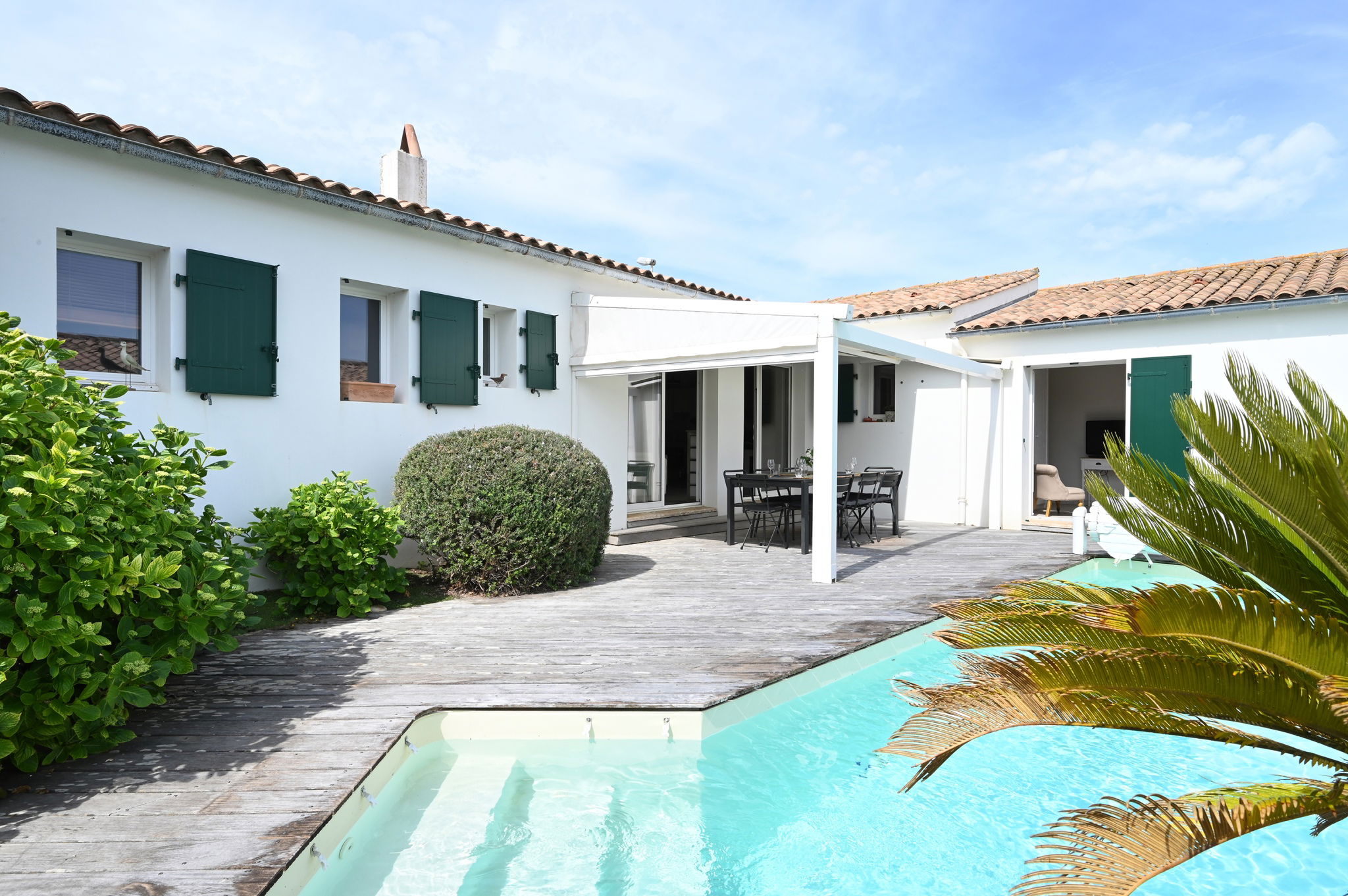Holiday home for 8 people - Heated swimming pool A real holiday home, bright and comfortable, just 200 meters from the beach. Ideal for car-free holidays in the heart of the Ile de Ré just 200 meters from the ocean. The house has an entrance opening onto the living room consisting of 2 spaces: one dining room side with an open and fully equipped kitchen and the other a peaceful-looking living room open to the outside . Night side You will find a suite on the pool side with its own bathroom and then 4 bedrooms on the other side of the house with a bathroom (shower and bathtub). A pantry with washing machine and dryer 2 WC Practical side The garage is not available for rent, parking is in front of the house or there is a public car park, Bicycles can be stored in the courtyard of the house. Wifi For your convenience, end-of-stay cleaning is included. Linen is optional at the rate of 35 € / room. CONDITIONS TIMES OF ARRIVAL AND DEPARTURE As a general rule, arrivals in the accommodation are from 4 p.m. to 8 p.m., and departures from 8 a.m. to 10 a.m. For any arrival or departure before 8 a.m. and after 8 p.m., an additional rate is applied: From 8 p.m. to 10 p.m. - €40 From 10 p.m. to midnight - €80 From Midnight to 6 a.m. - €120 From 6 a.m. cancellation insurance. Do not hesitate to contact us for more information. Professional announcement