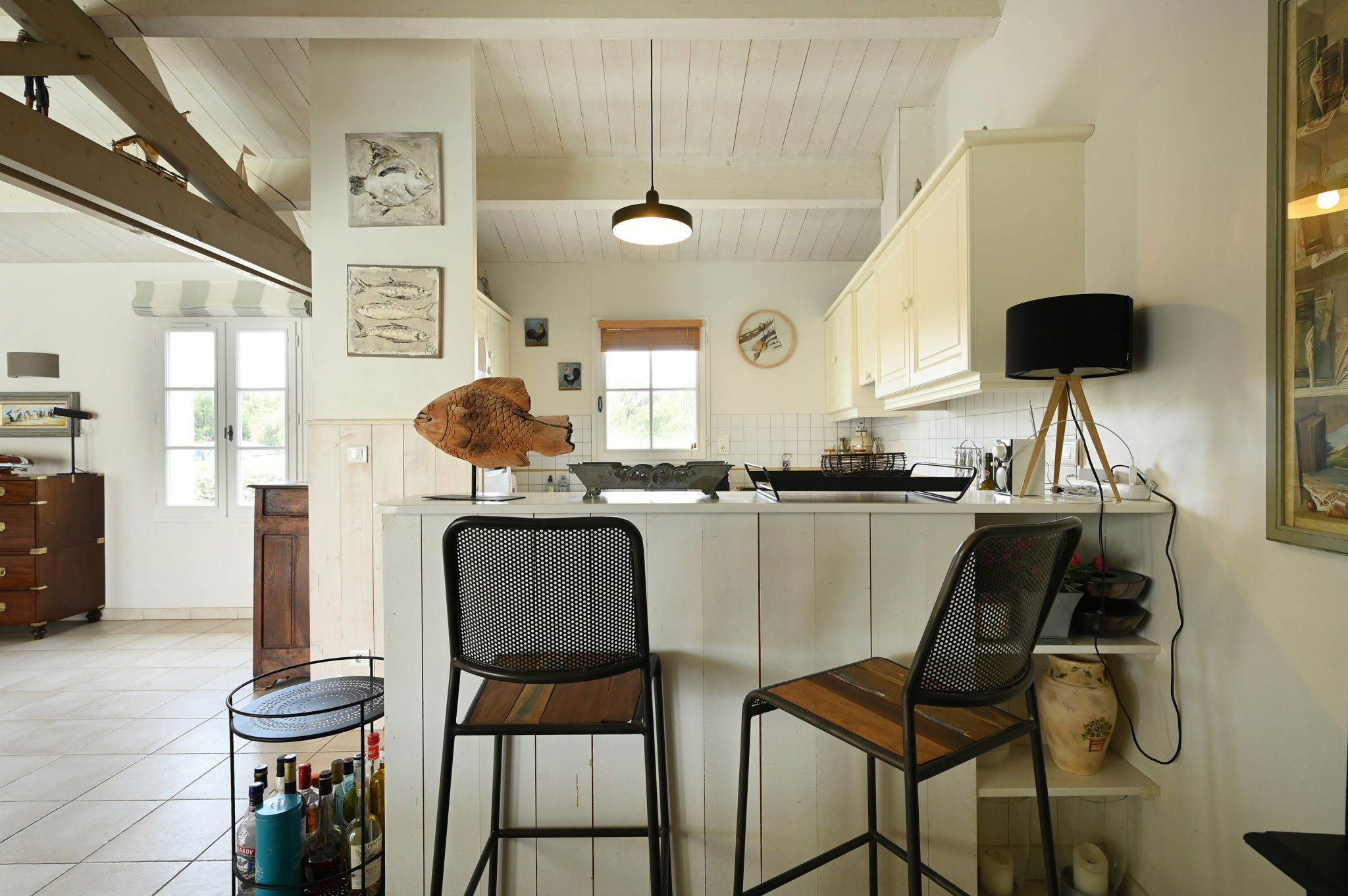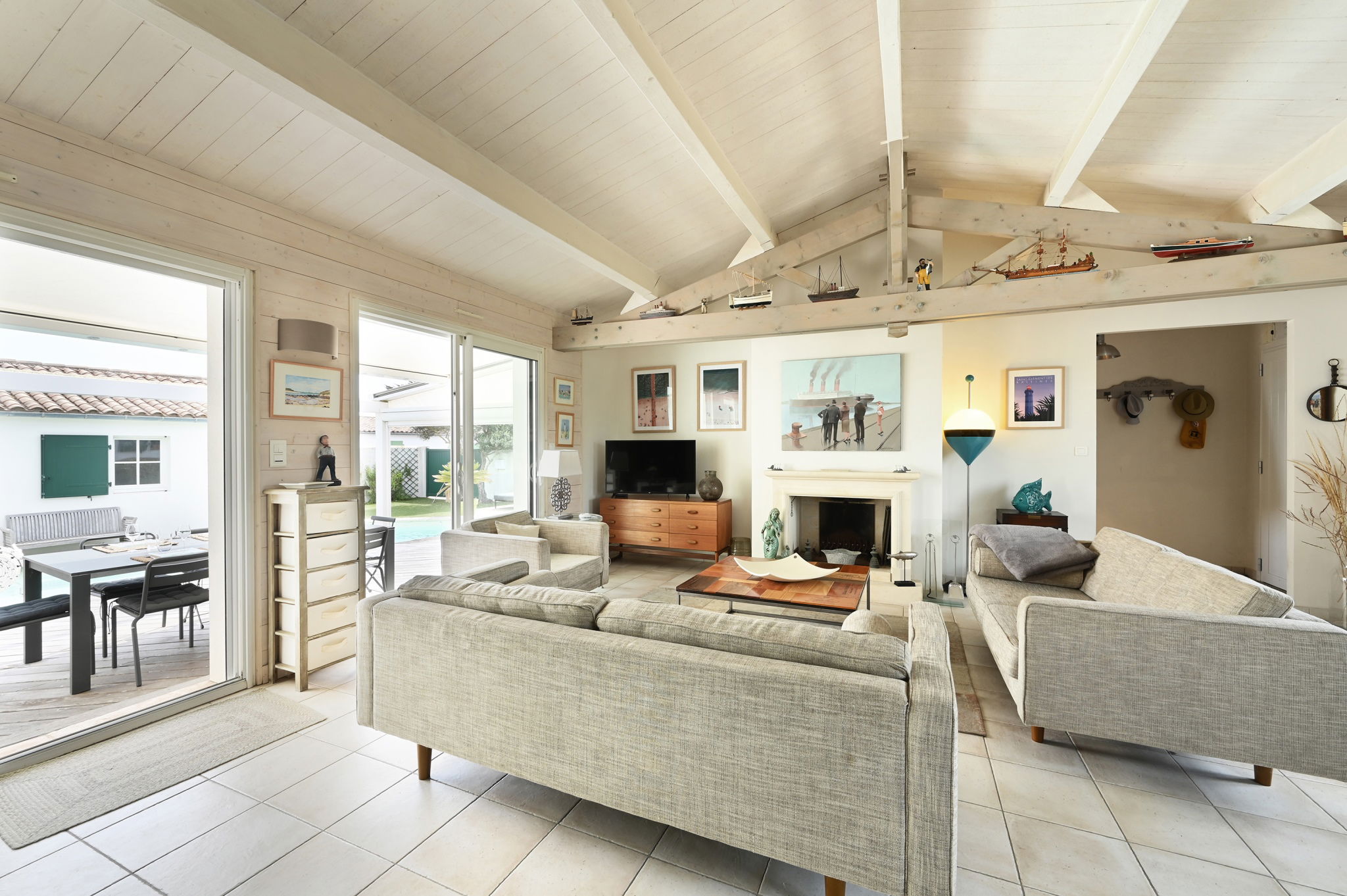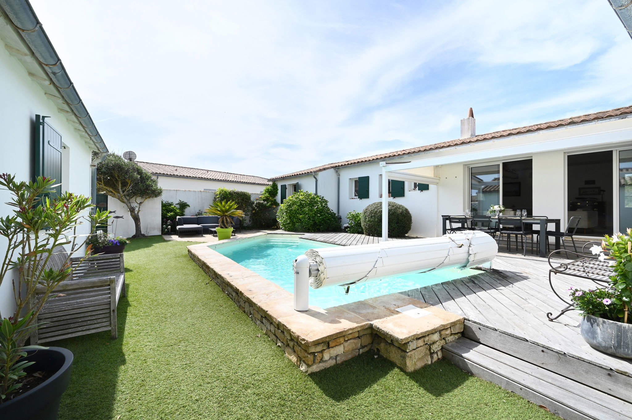 Holiday home for 8 people - Heated swimming pool A real holiday home, bright and comfortable, just 200 meters from the beach. Ideal for car-free holidays in the heart of the Ile de Ré just 200 meters from the ocean. The house has an entrance opening onto the living room consisting of 2 spaces: one dining room side with an open and fully equipped kitchen and the other a peaceful-looking living room open to the outside . Night side You will find a suite on the pool side with its own bathroom and then 4 bedrooms on the other side of the house with a bathroom (shower and bathtub). A pantry with washing machine and dryer 2 WC Practical side The garage is not available for rent, parking is in front of the house or there is a public car park, Bicycles can be stored in the courtyard of the house. Wifi For your convenience, end-of-stay cleaning is included. Linen is optional at the rate of 35 € / room. CONDITIONS TIMES OF ARRIVAL AND DEPARTURE As a general rule, arrivals in the accommodation are from 4 p.m. to 8 p.m., and departures from 8 a.m. to 10 a.m. For any arrival or departure before 8 a.m. and after 8 p.m., an additional rate is applied: From 8 p.m. to 10 p.m. - €40 From 10 p.m. to midnight - €80 From Midnight to 6 a.m. - €120 From 6 a.m. cancellation insurance. Do not hesitate to contact us for more information. Professional announcement