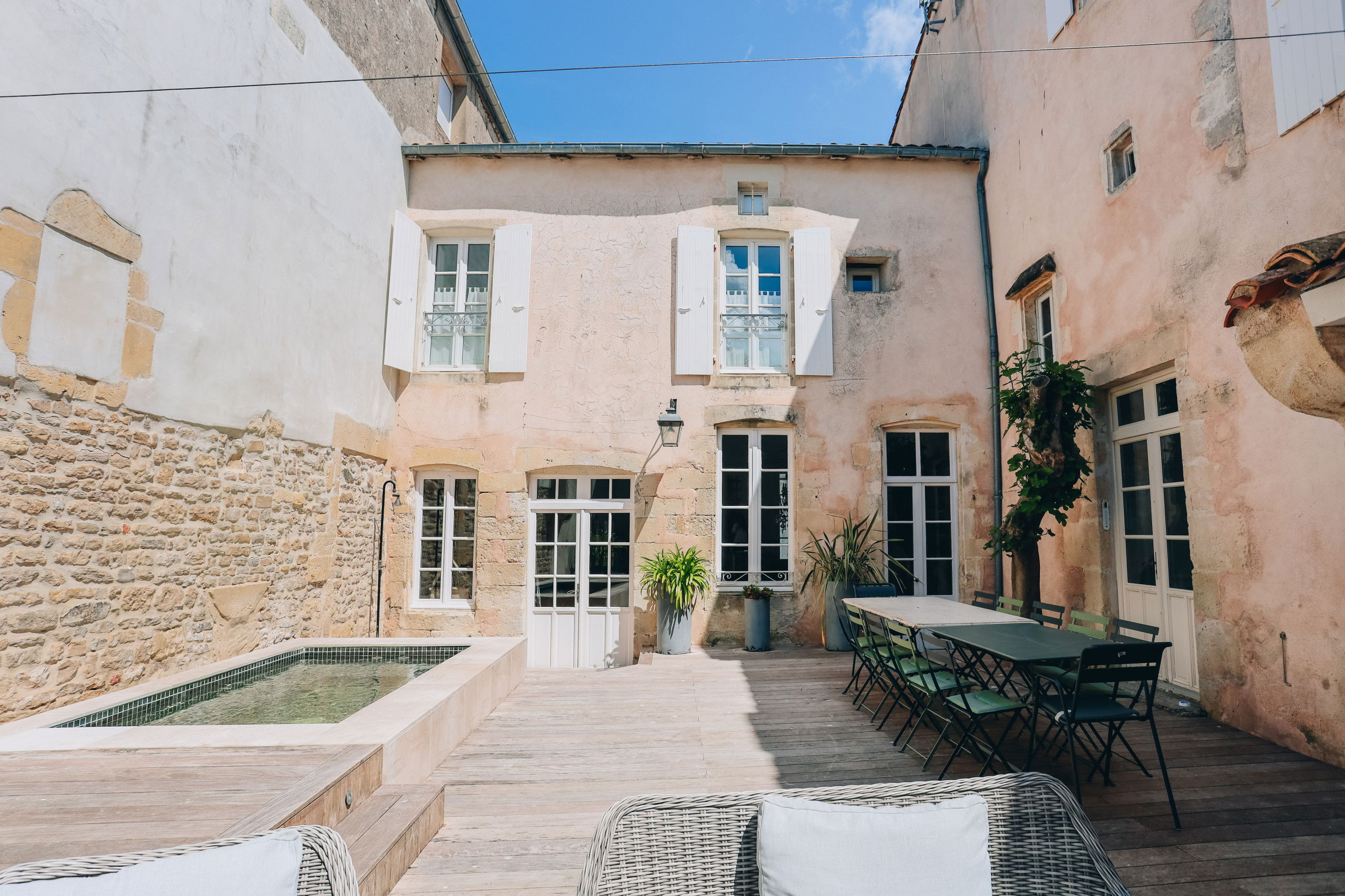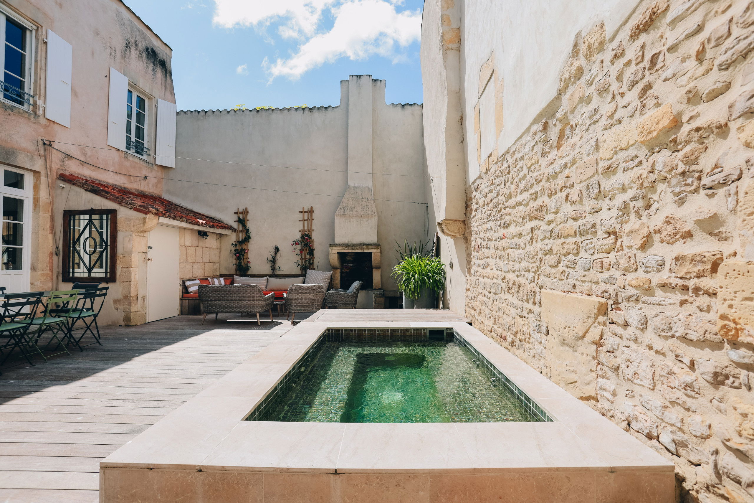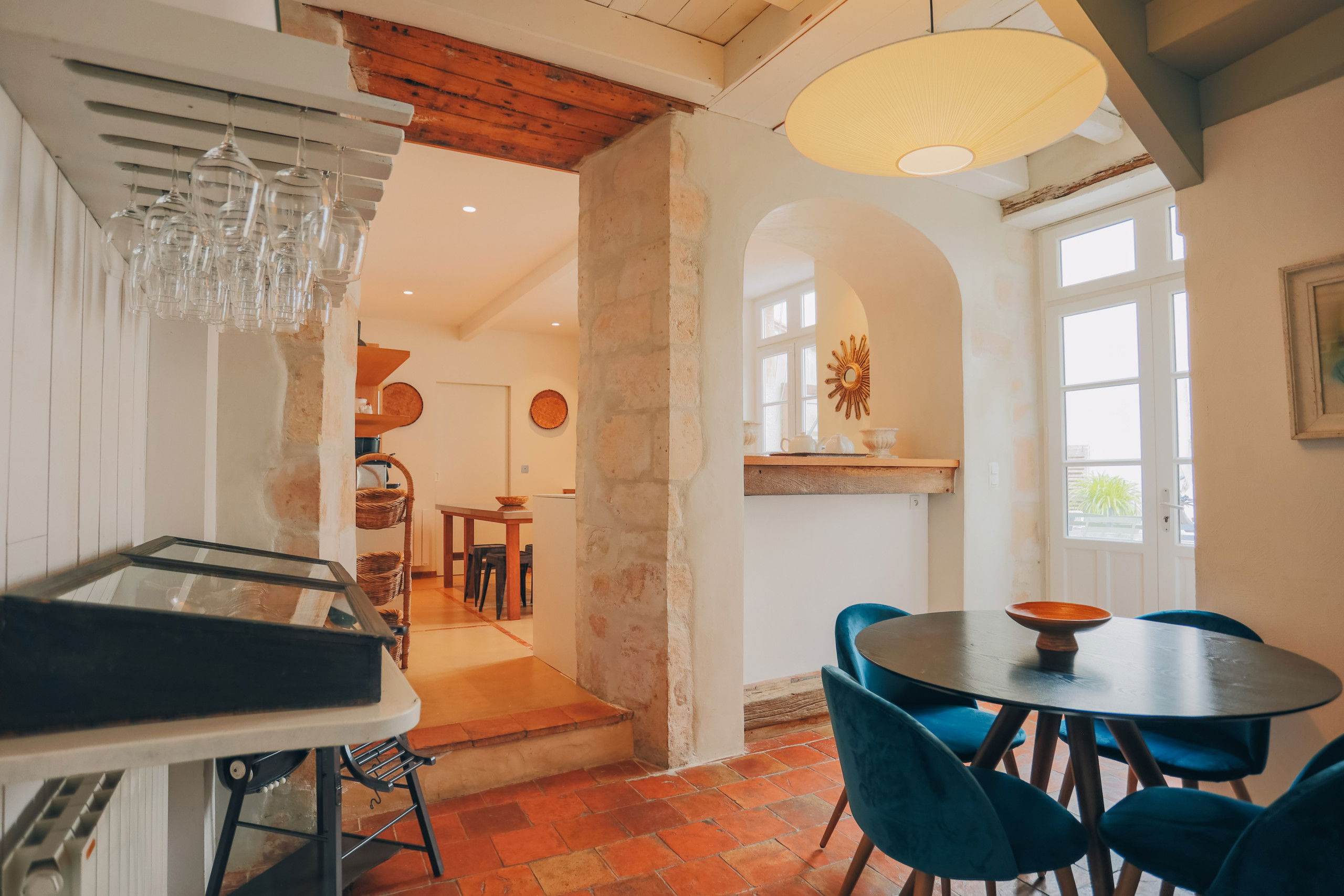 The villa Le Passé Simple, located on the Ile de Ré, in the heart of Saint Martin, will seduce you for a charming rental with its swimming pool/spa, its very cozy decoration, its stones and exposed beams.