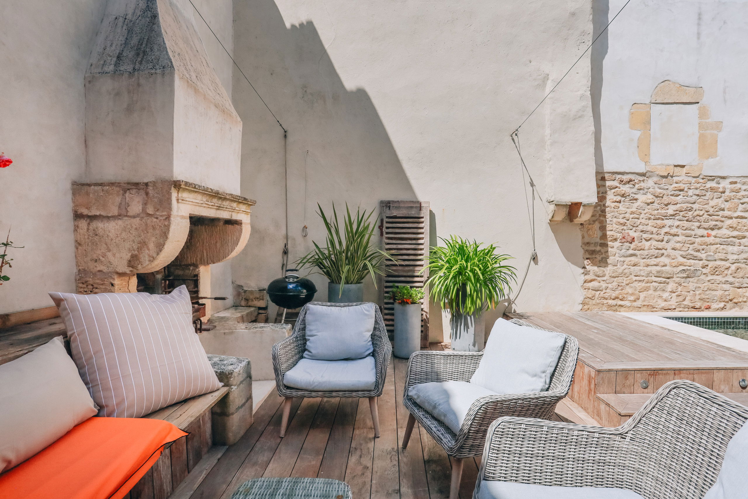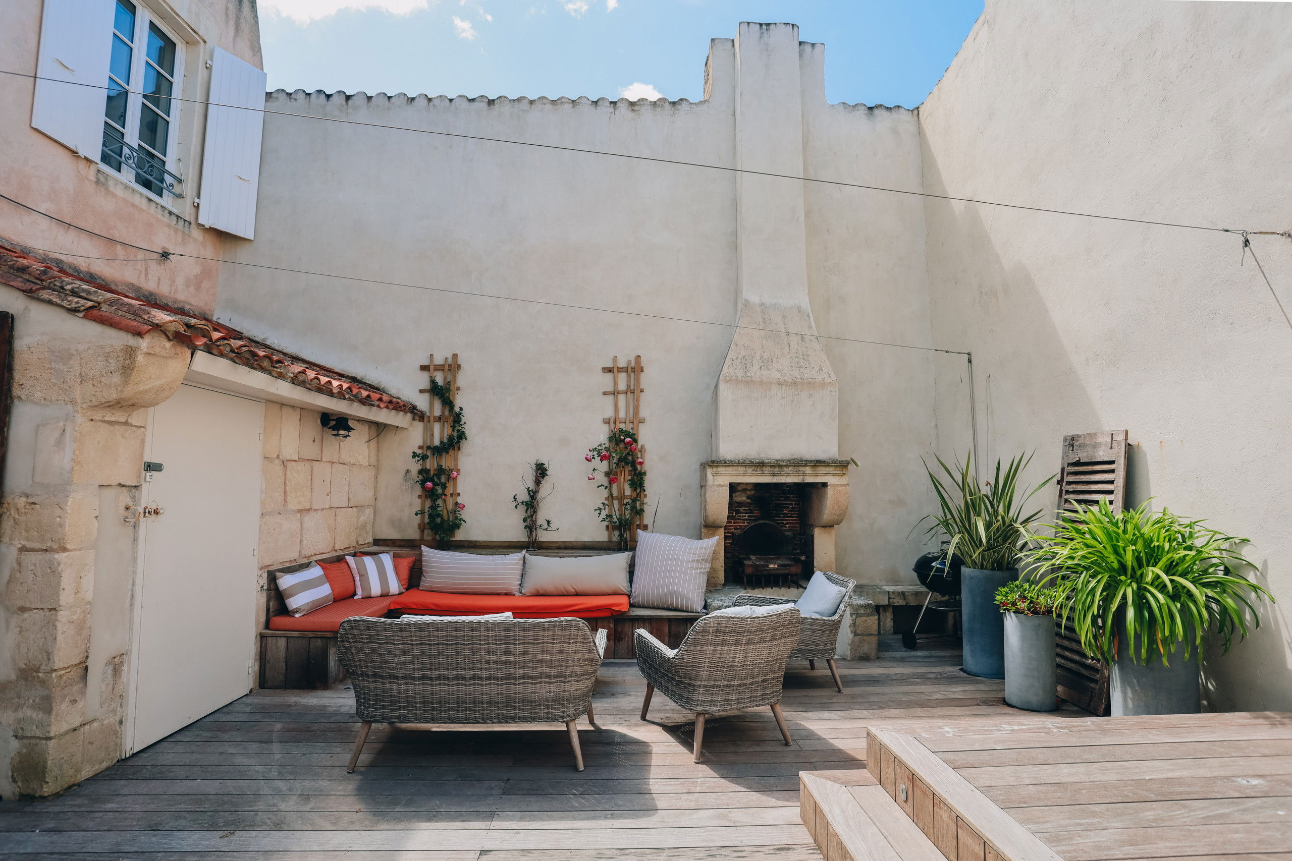 - an outdoor fireplace provided for the barbecue
