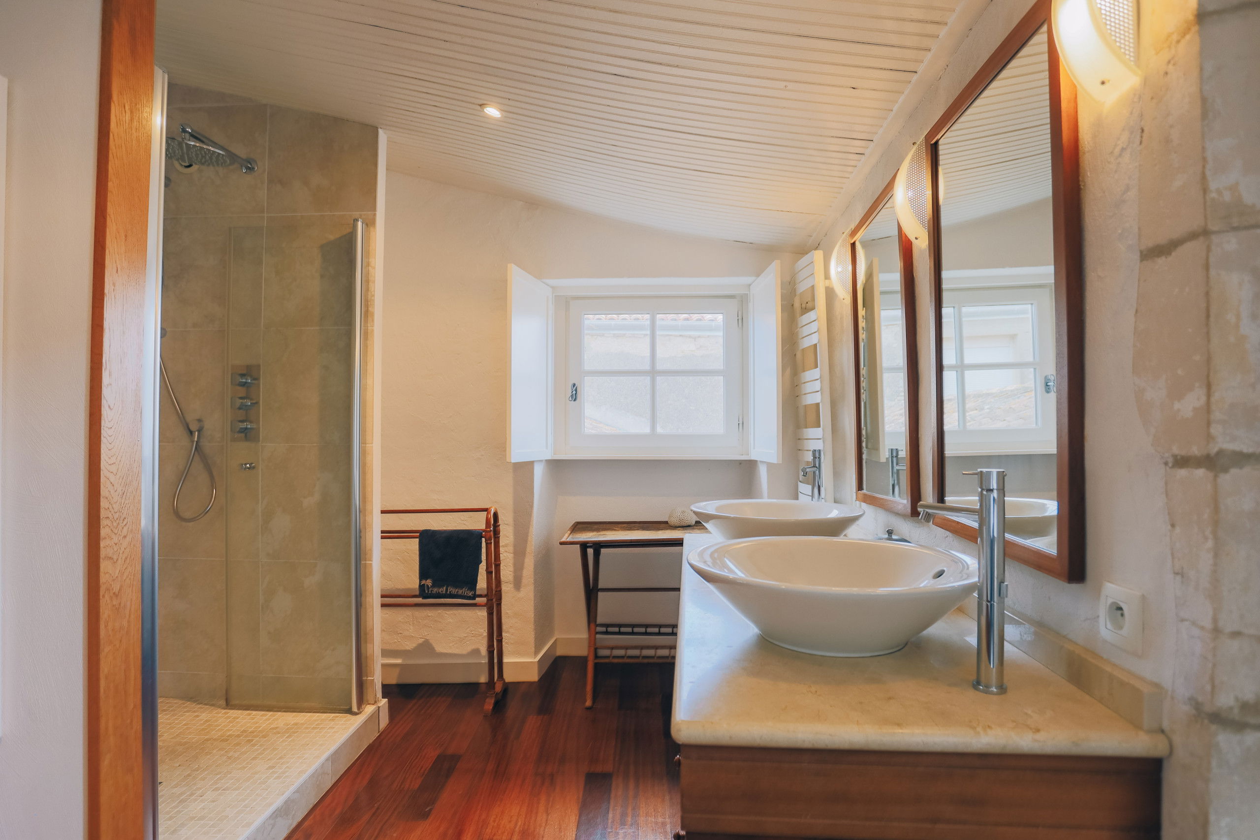 This house on 2 floors, has large living spaces. Bathed in light thanks to its many windows overlooking the courtyard and its heated swimming pool/spa, you will be seduced by the comfort of the common and private rooms.